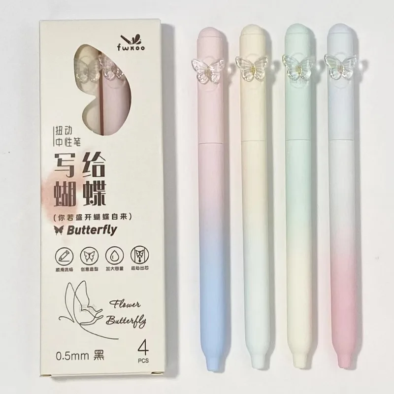Bolígrafo Neutral de mariposa de Color degradado creativo, bolígrafos de firma novedosos de alta calidad, bolígrafos de Gel de secado rápido bonitos a la moda, regalos, 4 Uds.