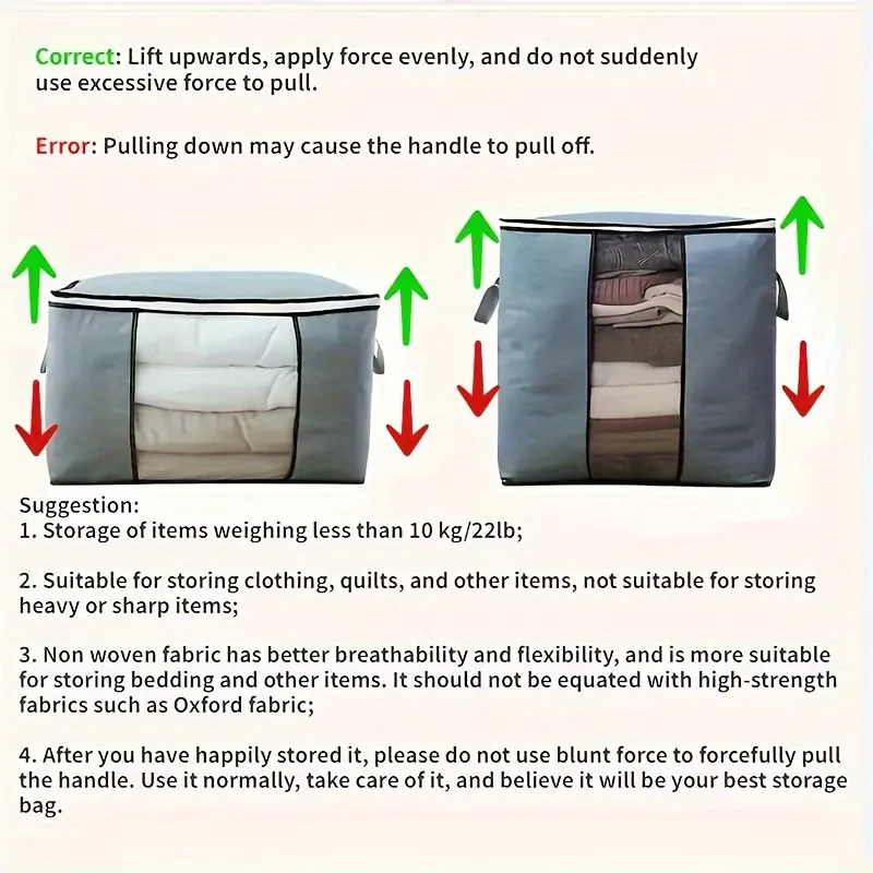 Bolsa de almacenamiento acolchada extragrande de 1 pieza: asas reforzadas! Organizador duradero para ropa, ropa de cama y edredones, ventana transparente