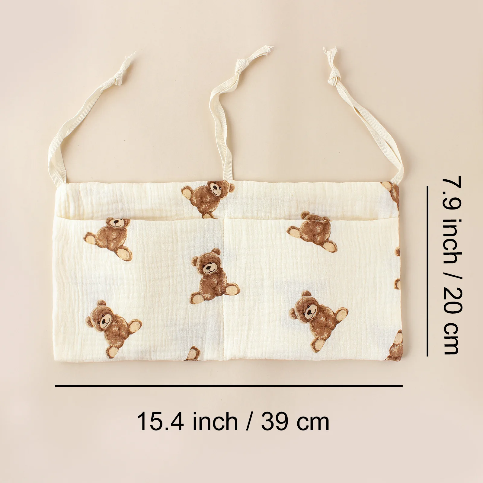 Bolsa de almacenamiento para cabecera de cama de bebé, organizador colgante con estampado de dibujos animados bonitos de doble bolsillo para cunas y cochecitos, portabotellas