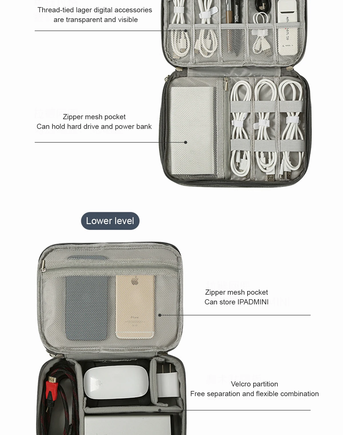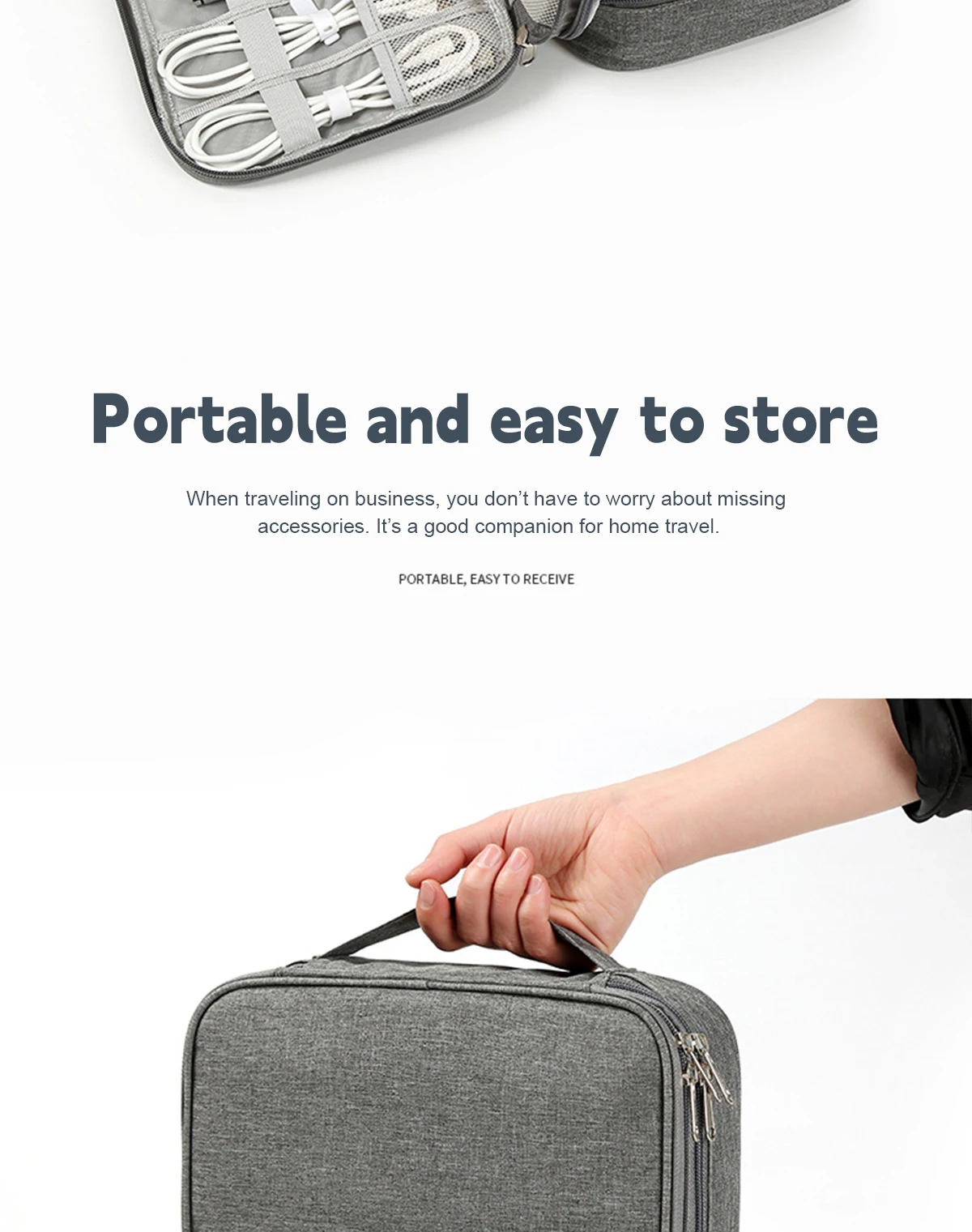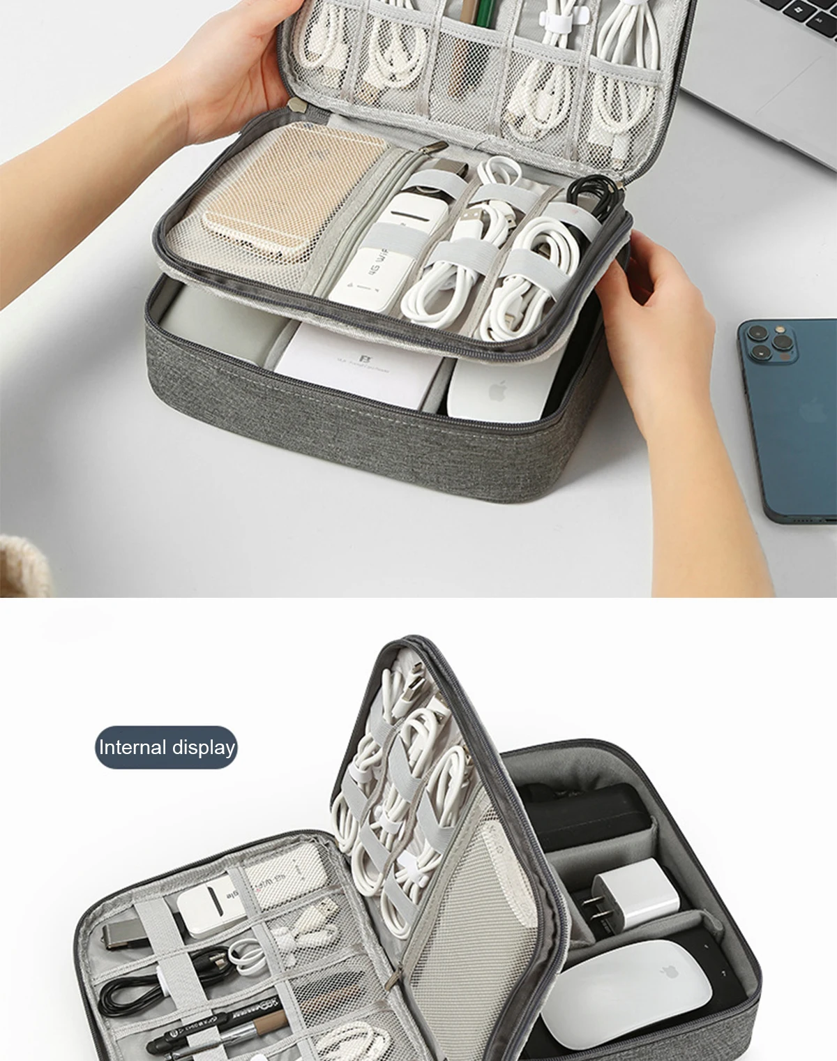 -3.Mantenga todo en un solo lugar, este organizador de cables electrónico de viaje puede mantener sus cosas perfectamente almacenadas en un solo lugar y de fácil acceso, sin ensuciar, sin perder, sin daños.