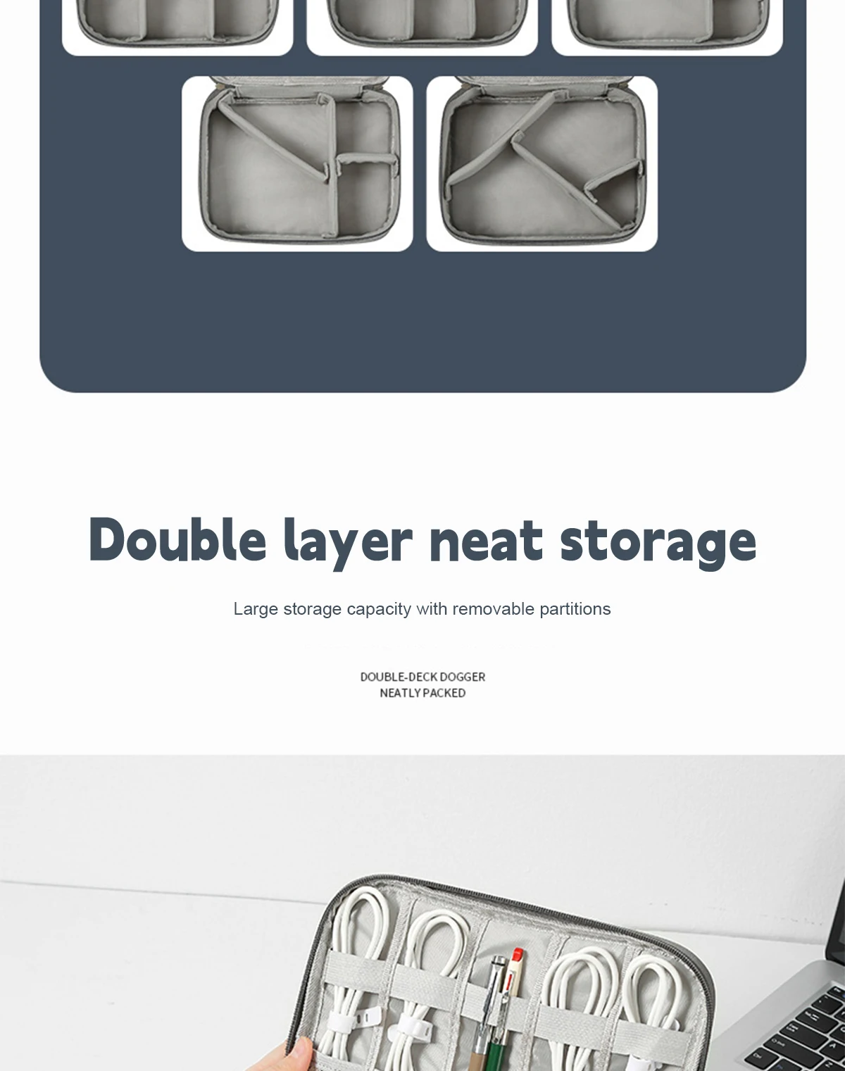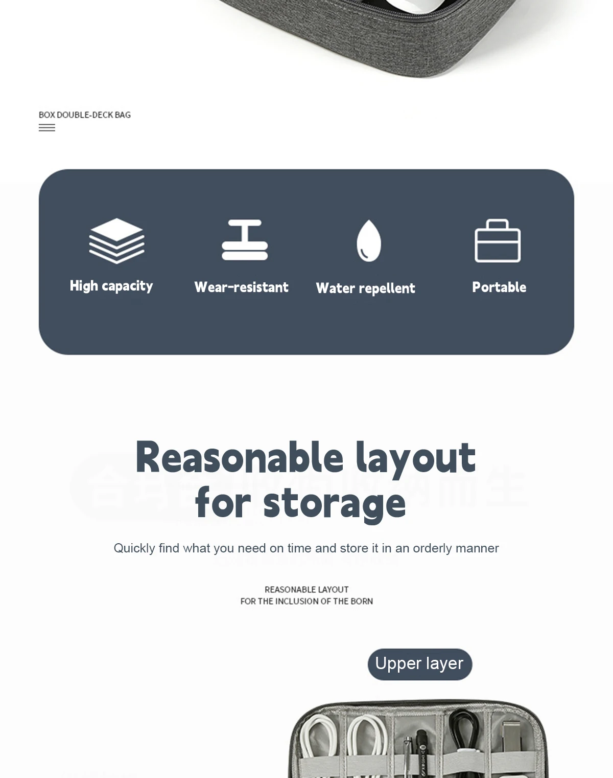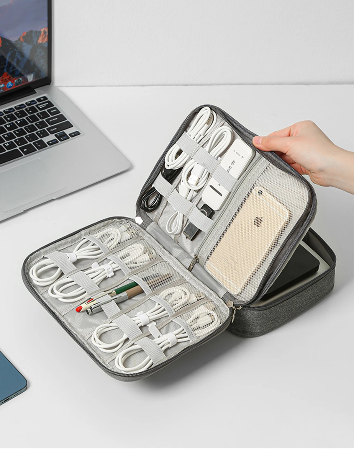 -3.Mantenga todo en un solo lugar, este organizador de cables electrónico de viaje puede mantener sus cosas perfectamente almacenadas en un solo lugar y de fácil acceso, sin ensuciar, sin perder, sin daños.