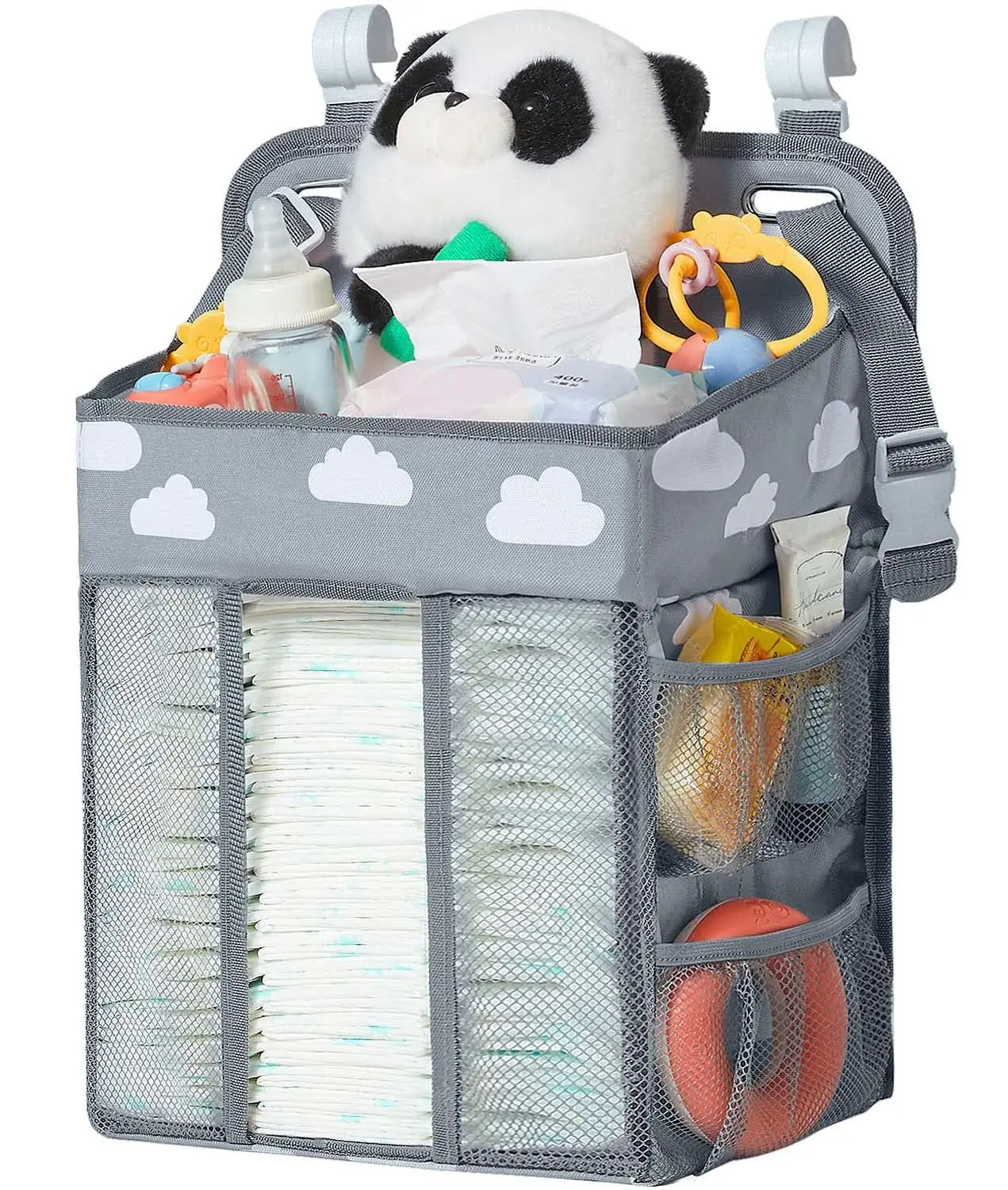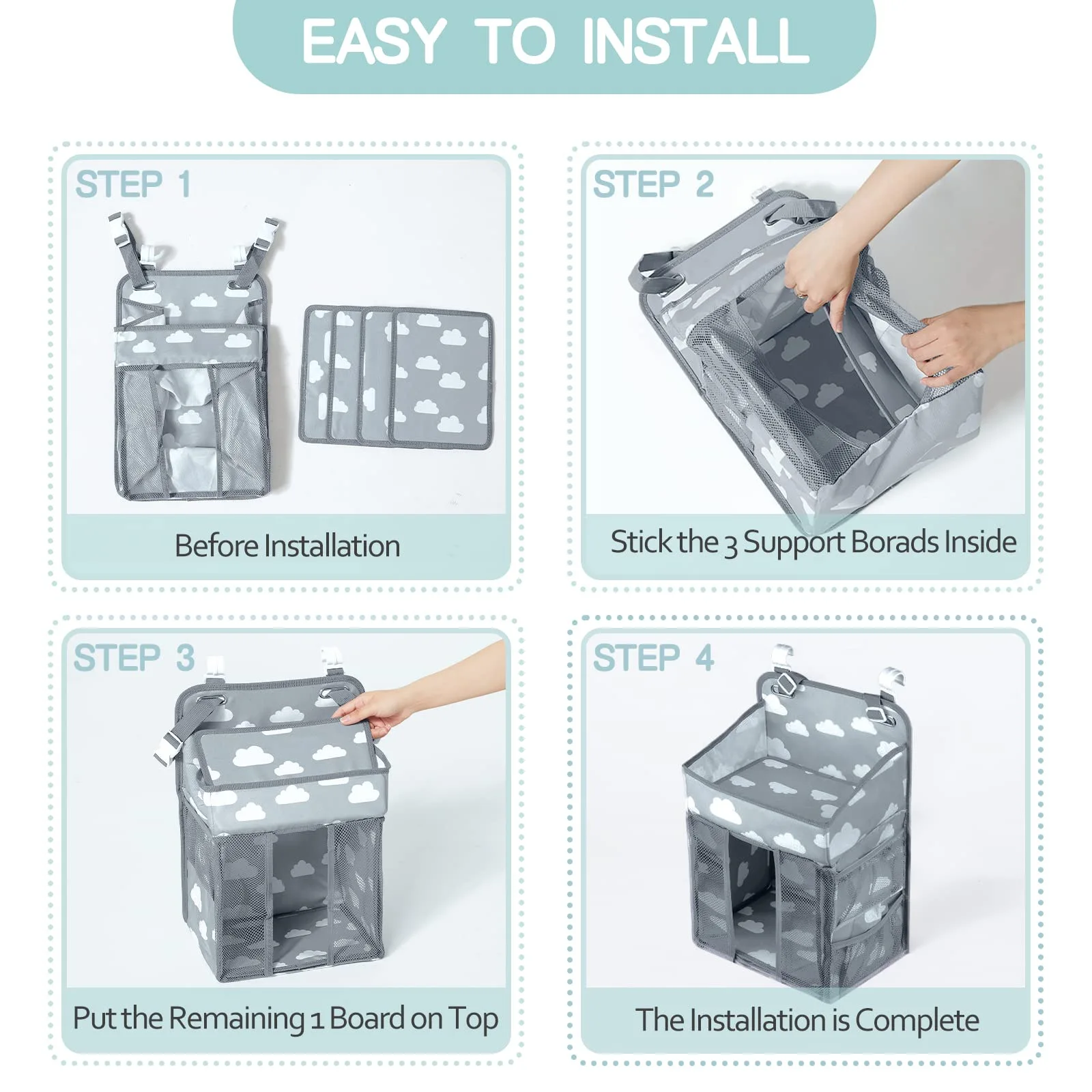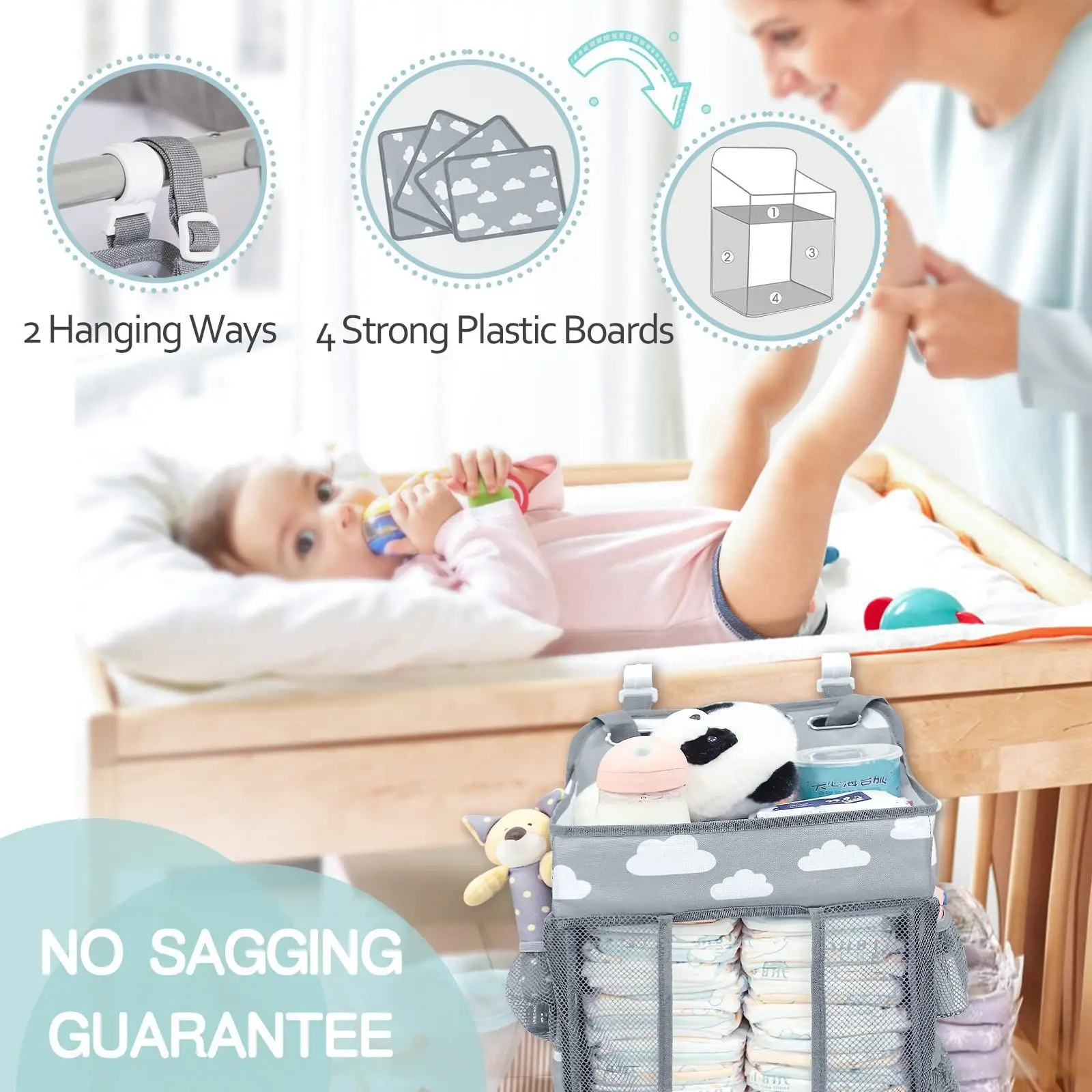 Bolsa de almacenamiento colgante para cuna de bebé, organizador de pañales, bolsa organizadora para cuna, artículos esenciales para pañales, juego de cama para cuna para bebés y niños