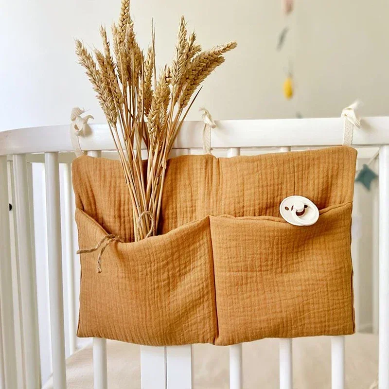 Bolsa de almacenamiento para cuna de bebé, bolsa doble de algodón, organizador para cabecera de cama para recién nacido, ropa de cama para niños, bolsa de pañales para juguetes