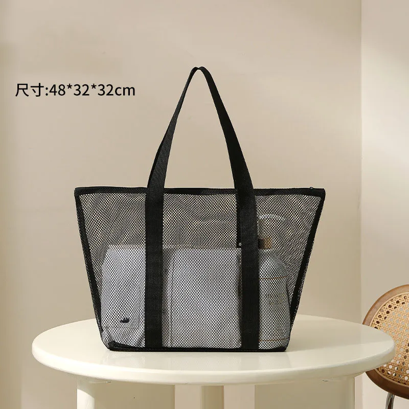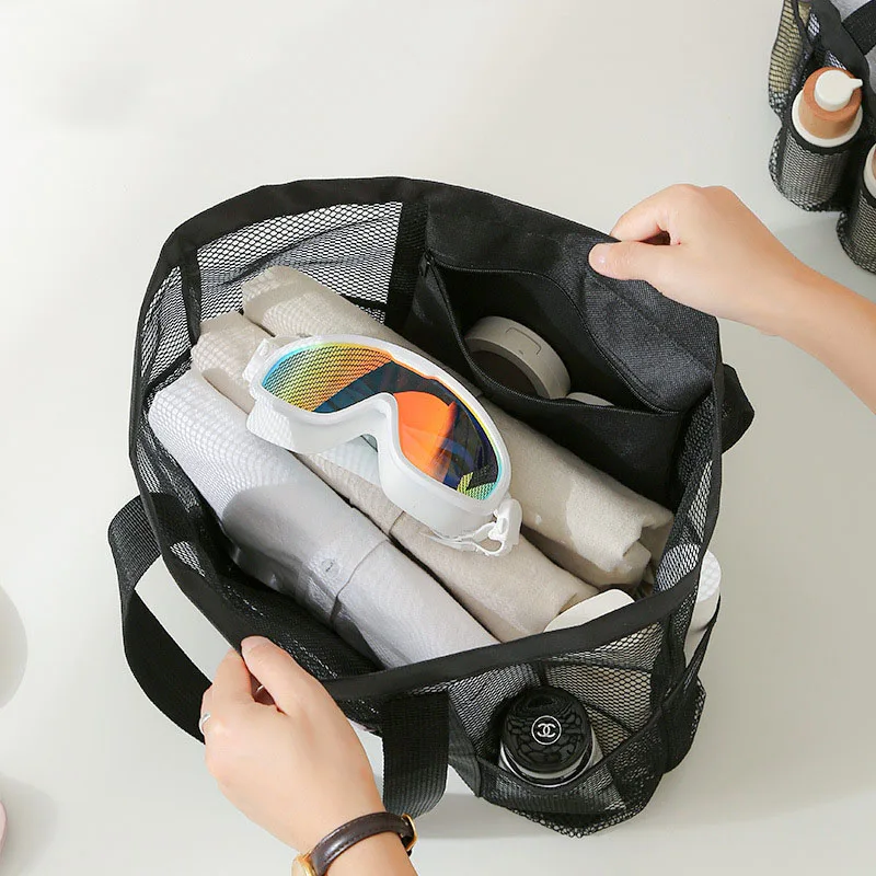 Bolsa de almacenamiento de ducha portátil para mujer, bolsa de malla de gran capacidad con bolsillos, bolsas de almacenamiento multifuncionales para el hogar, color negro