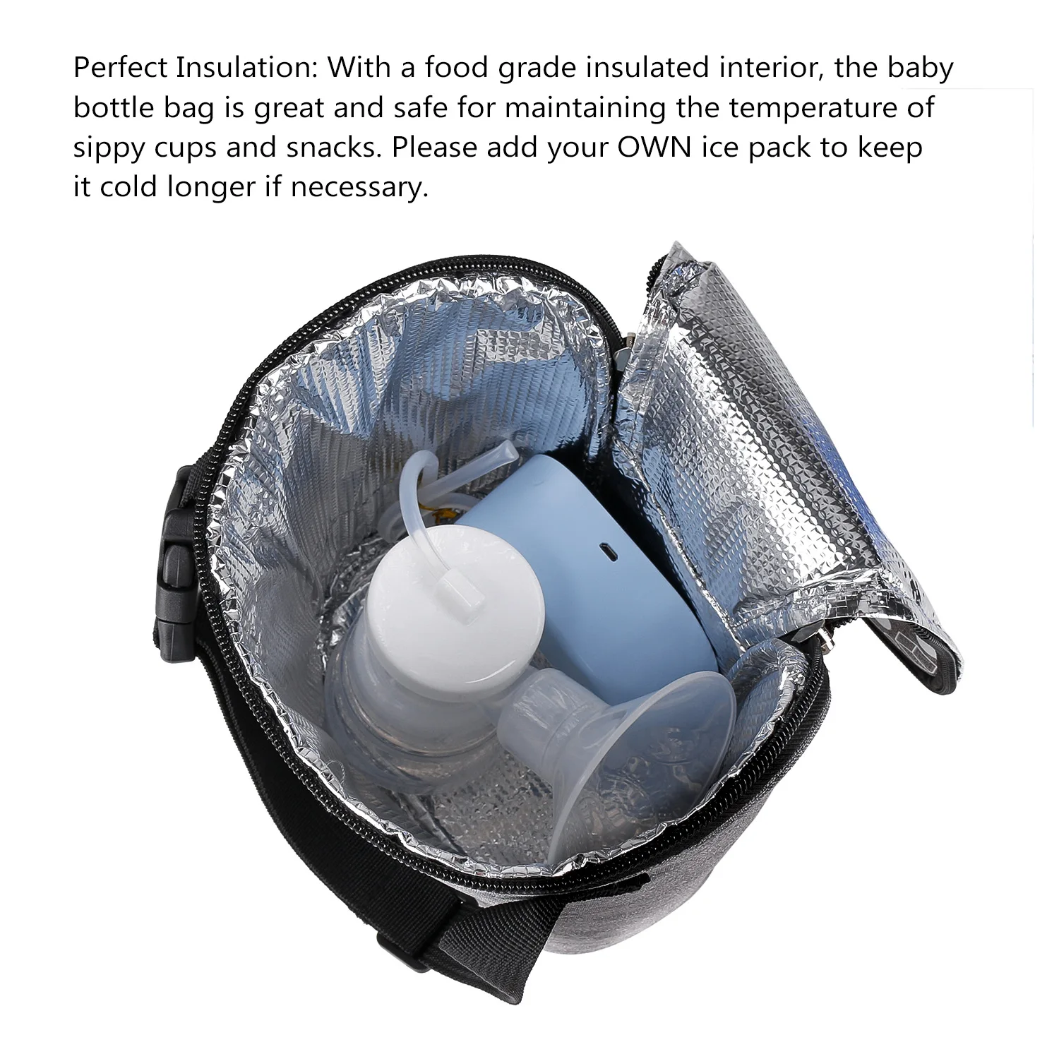 Aislamiento perfecto: con un interior aislado de grado alimenticio, la bolsa para biberones es excelente y segura para mantener la temperatura de los vasos y aperitivos. Añada su PROPIA bolsa de hielo para mantenerla fría por más tiempo si es necesario.