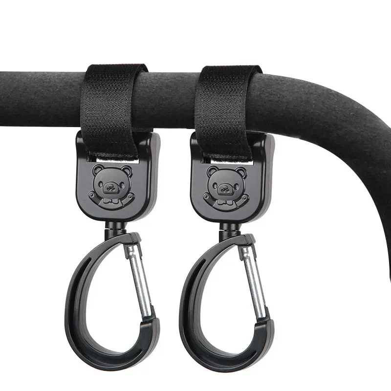 Comprar Bolsa de almacenamiento organizadora de carrito de 360 grados, ganchos para cochecito de bebé, colgador de bolsa colgante giratorio, accesorios universales para cochecito al aire libre