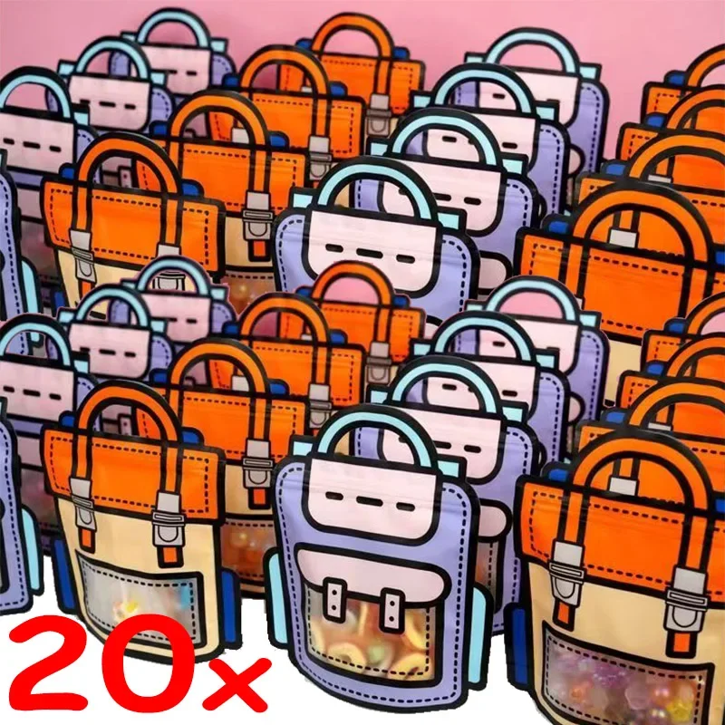 Bolsa de almuerzo creativa de 20 piezas para niños, bolsas escolares de plástico con cremallera para galletas y dulces, embalaje para aperitivos, regalos de fiesta de graduación y cumpleaños