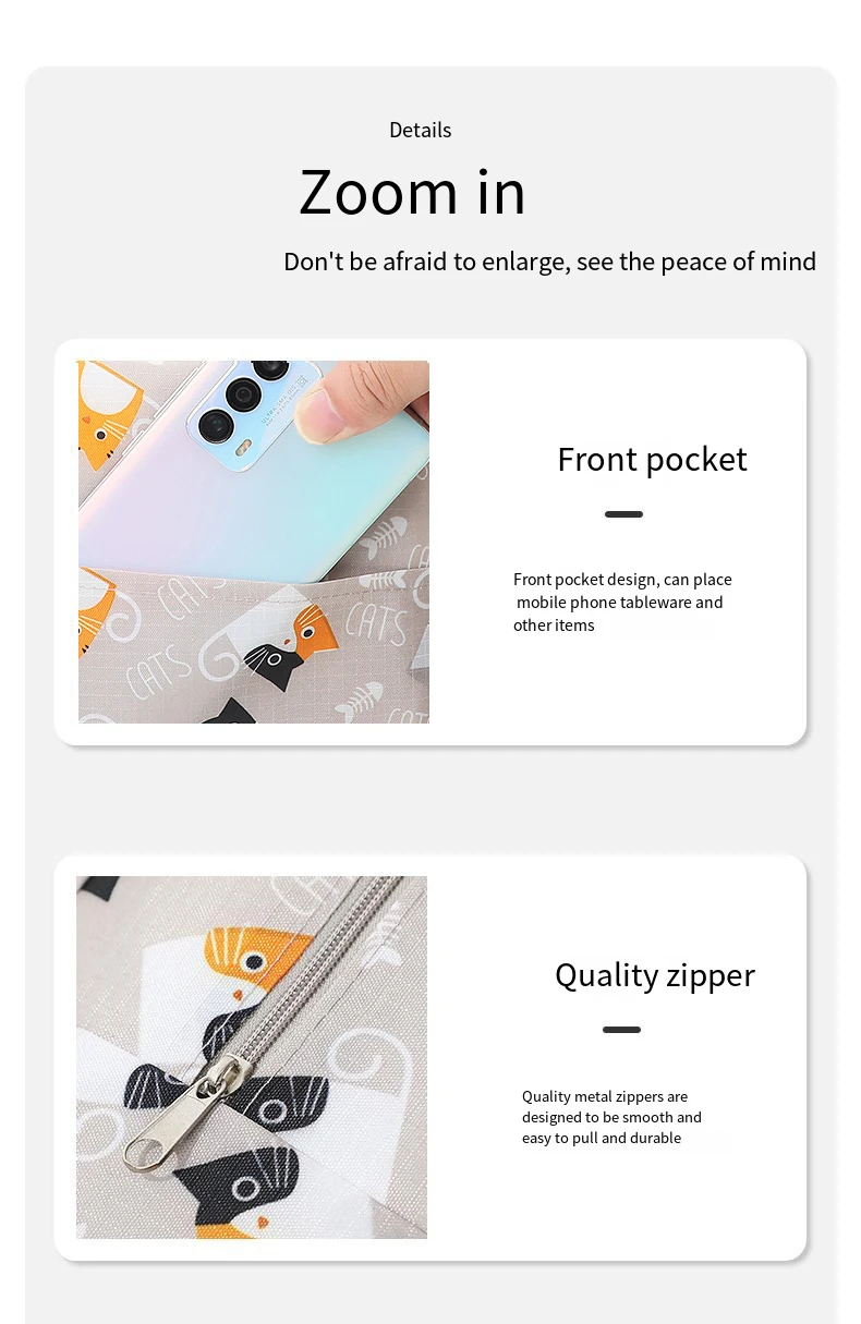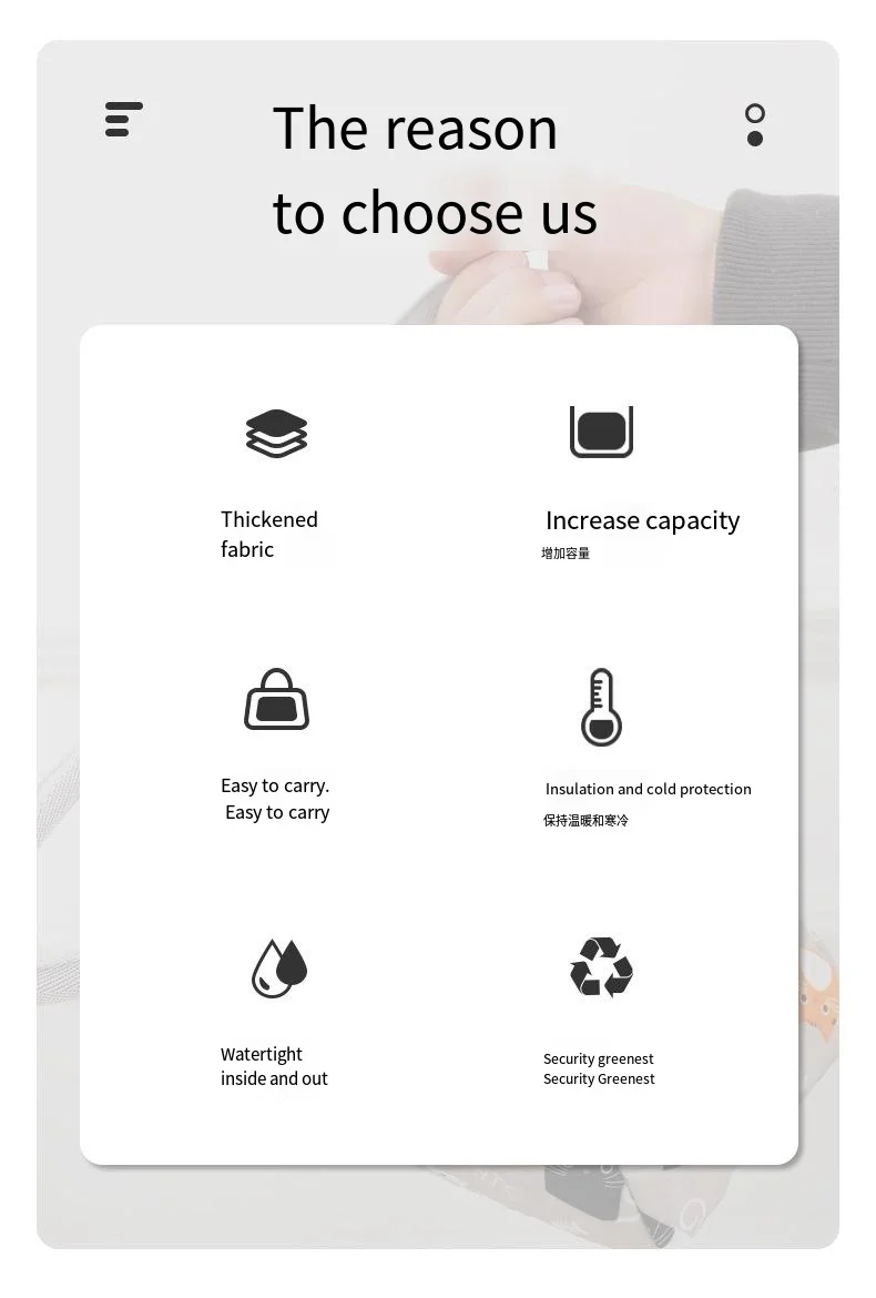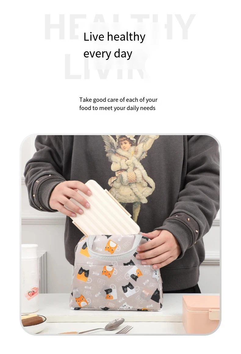 • Uso versátil:Con su espacioso interior y cómodo asa de transporte, Esta bolsa se puede utilizar para diversas ocasiones, como almuerzos escolares, picnics o excursiones de un día.