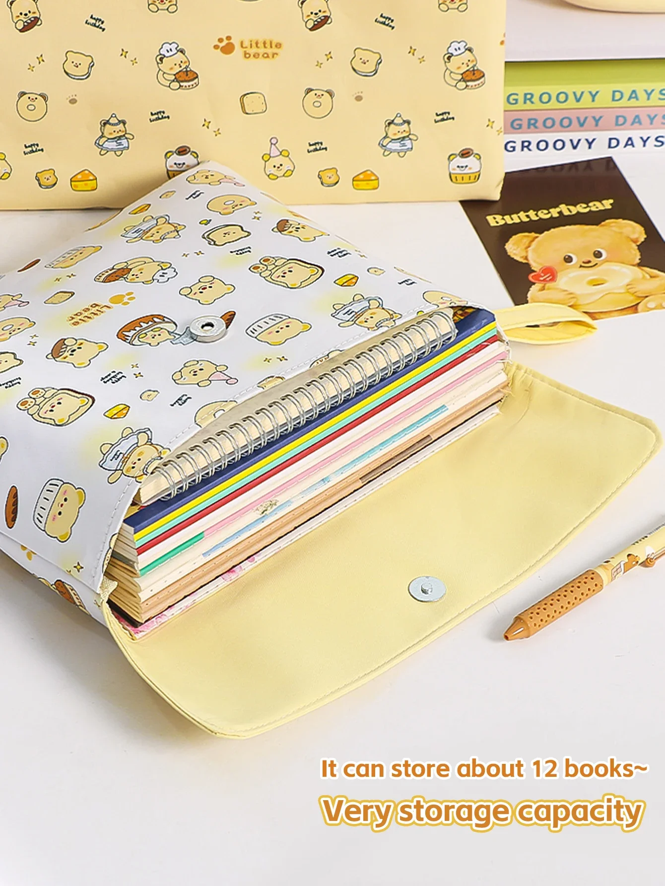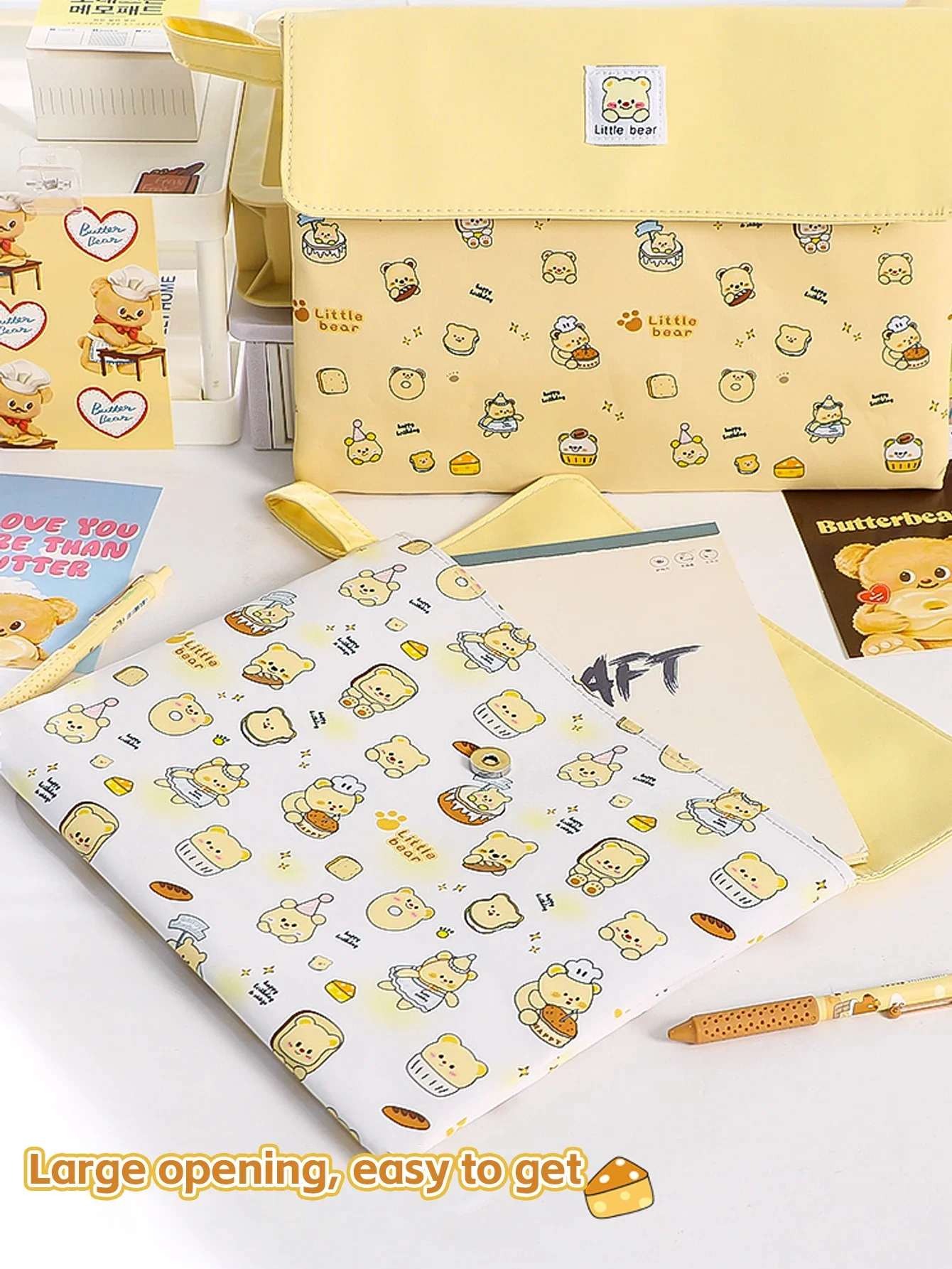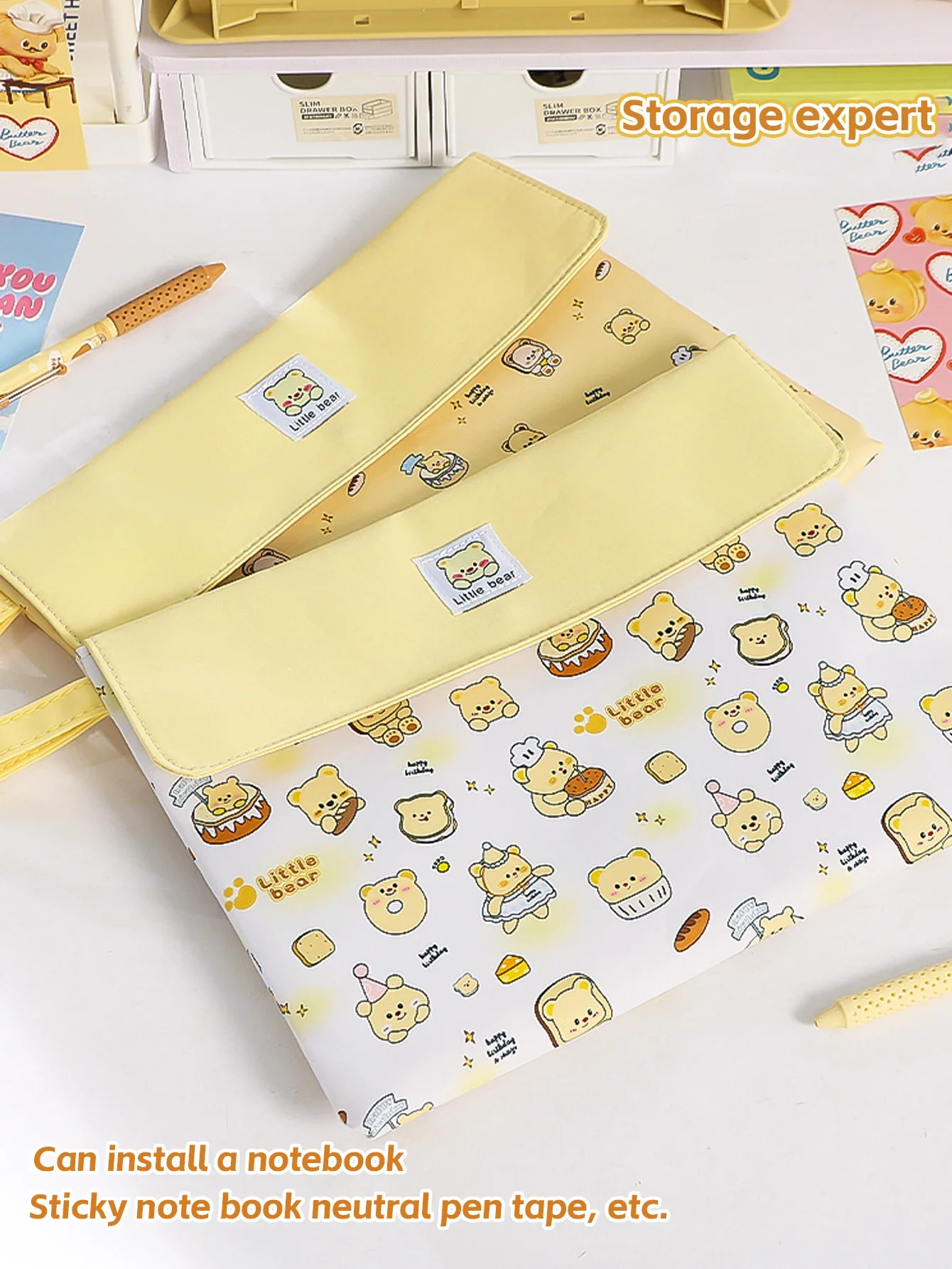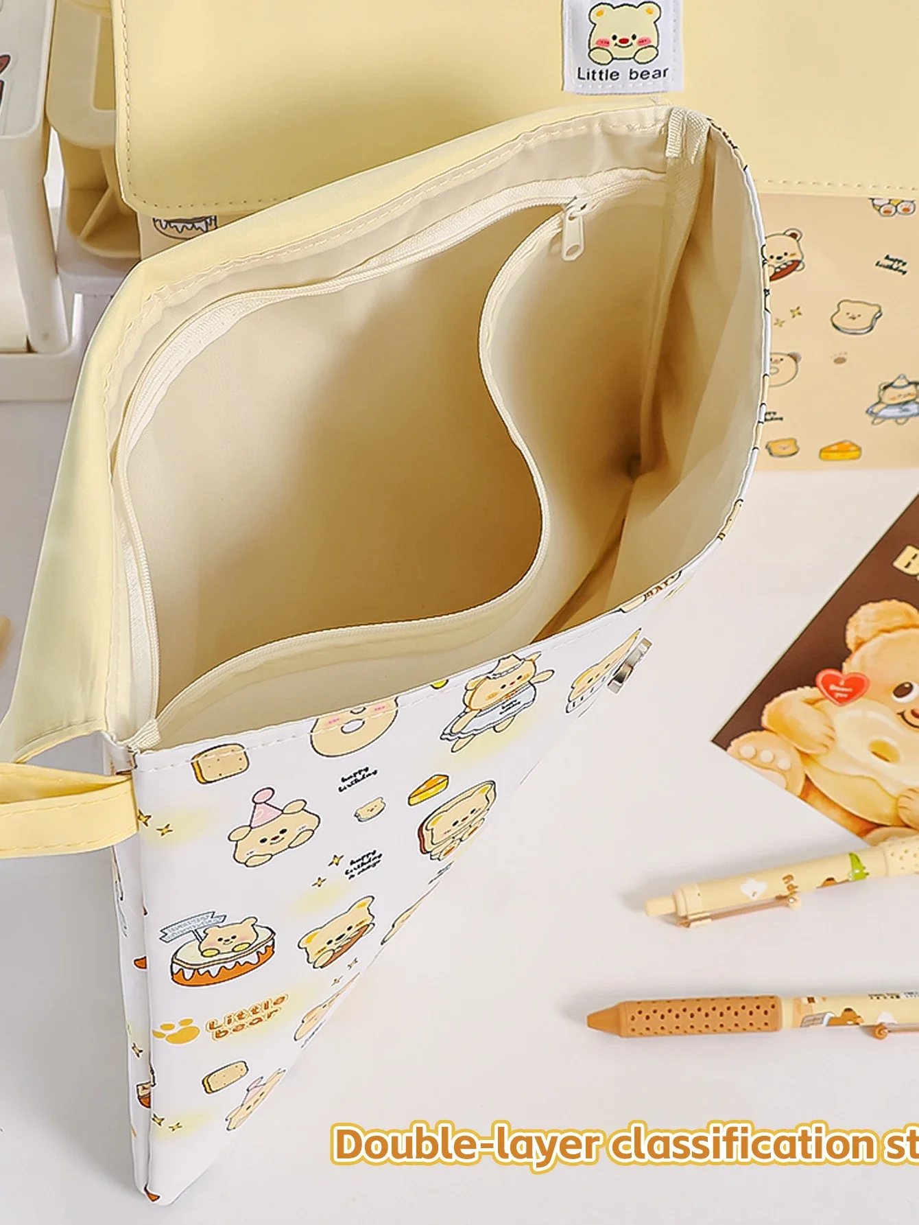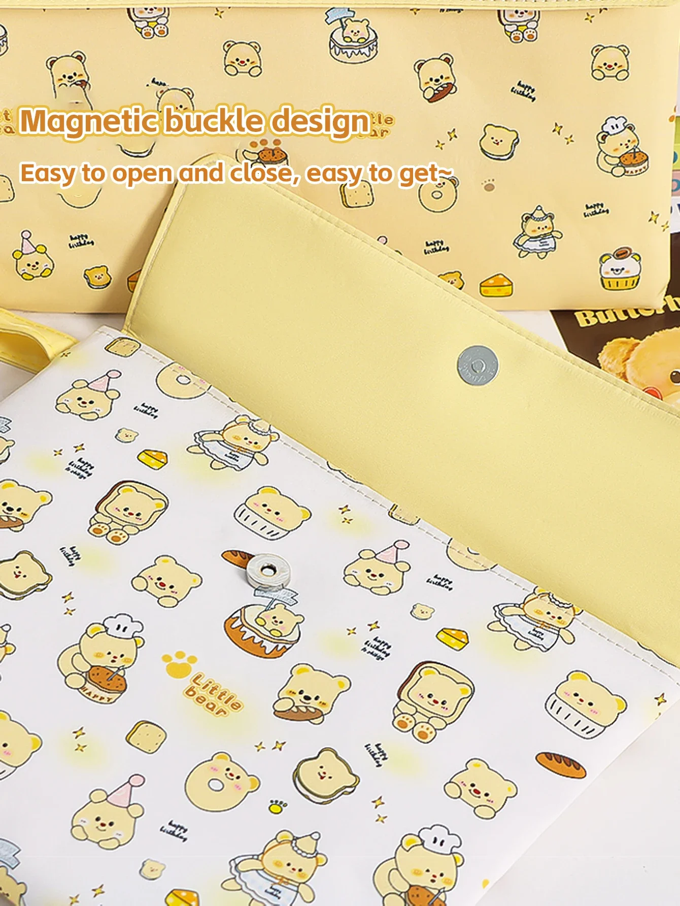 El diseño de hebilla magnética de doble capa con cremallera permite la colocación de cuadernos, blocs de notas, bolígrafos neutros, cinta adhesiva y más, lo que facilita la recuperación y el almacenamiento de artículos en la bolsa.