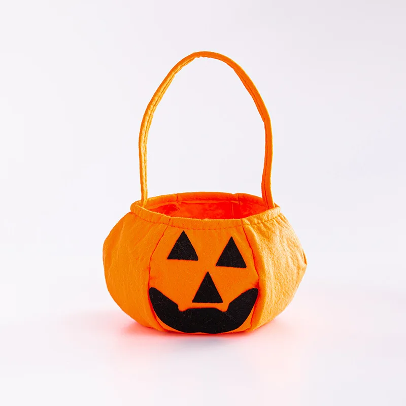 Comprar Bolsa de calabaza de mano de 2 piezas, bolsa de dulces, suministros de Halloween, accesorios decorativos para niños, cara sonriente, bolsa de calabaza tridimensional