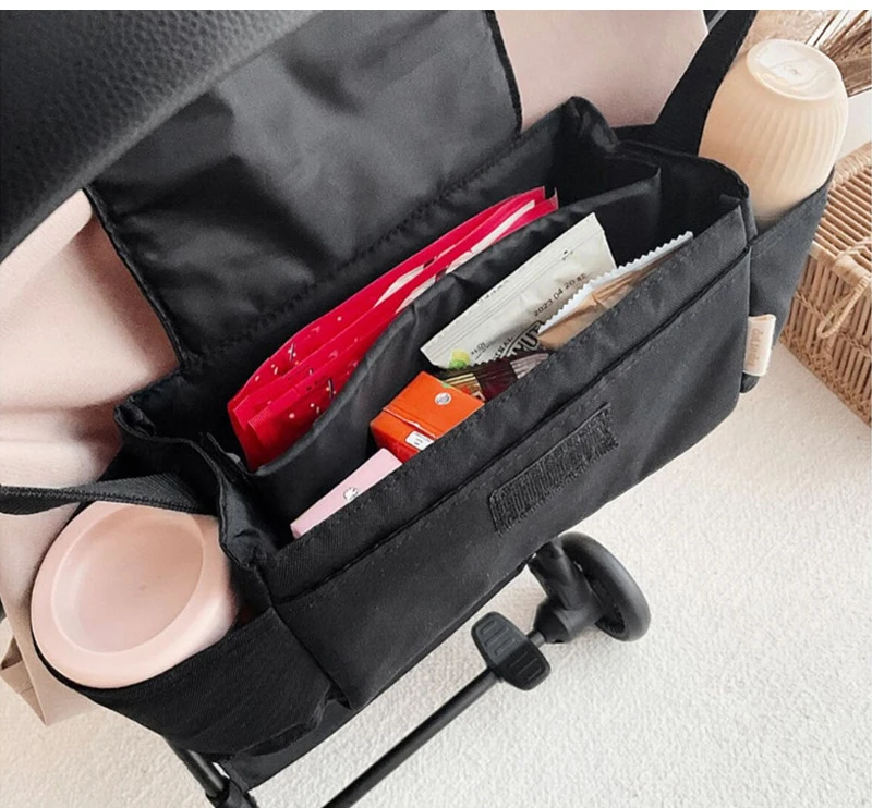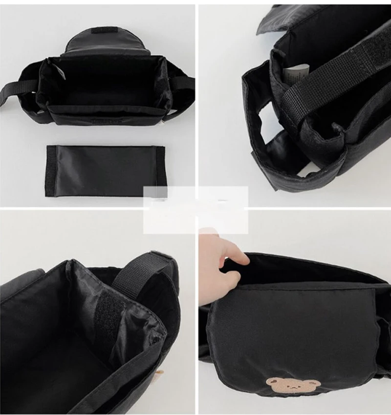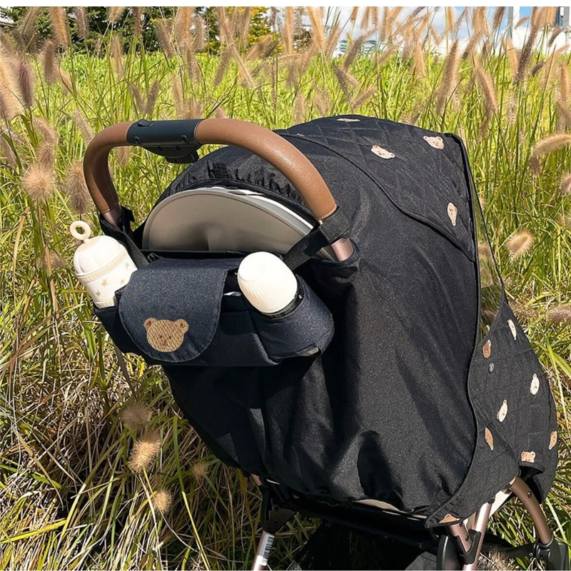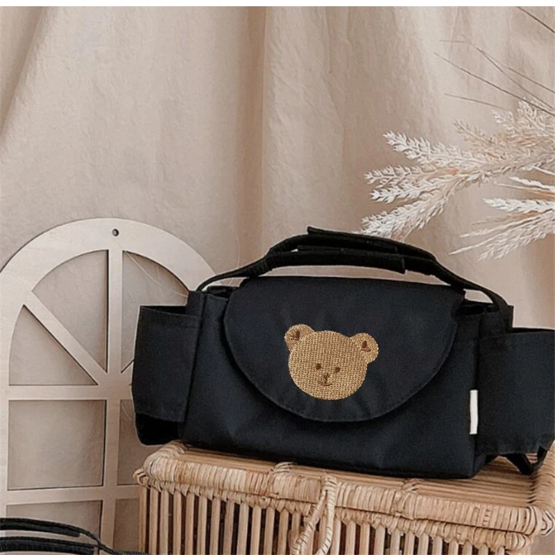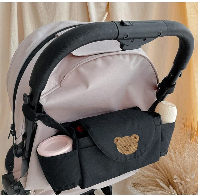 Bolsa para cochecito de bebé, bolsas de almacenamiento con bordado de oso y ardilla de dibujos animados, accesorios organizadores de cochecito colgantes portátiles impermeables para exteriores