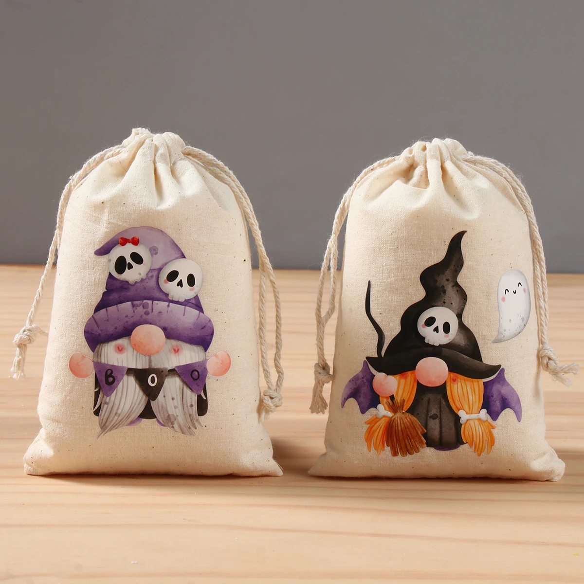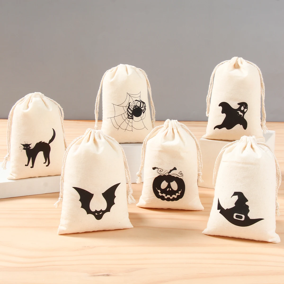 Comprar Bolsa con cordón para Halloween, paquete de lino de estilo mixto para guardar joyas, dulces, 6 piezas