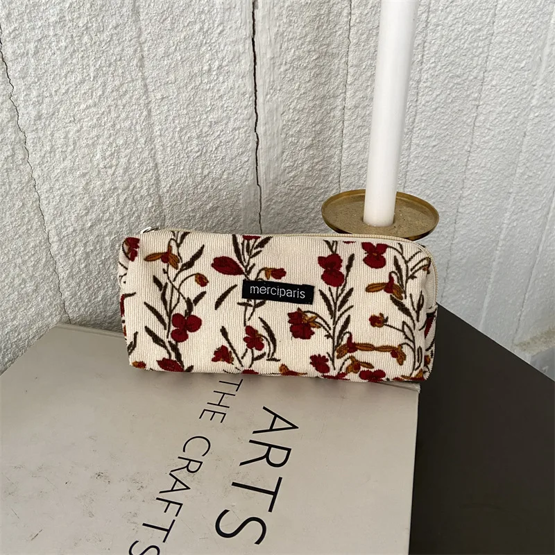 Comprar Bolsa de cosméticos con estampado de flores para mujer, estuche para lápices, Flore de viaje, bonito maquillaje, lápices labiales, brochas de maquillaje, bolsa de almacenamiento para volver a la escuela