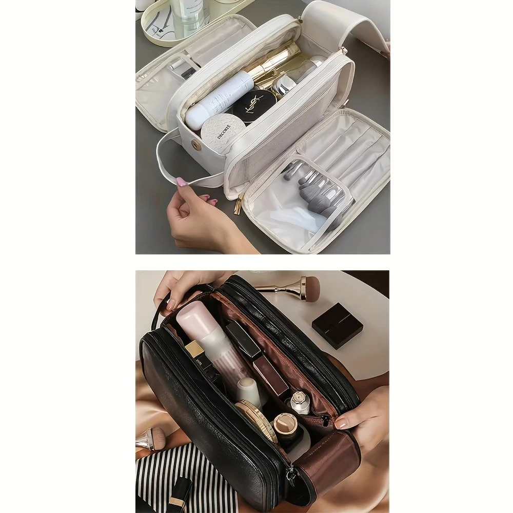 Comprar Bolsa de cosméticos multifuncional de PU resistente al agua, bolsa de maquillaje de viaje portátil de gran capacidad, bolsa de almacenamiento de artículos de tocador portátil de negocios para hombres