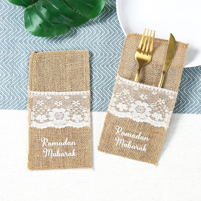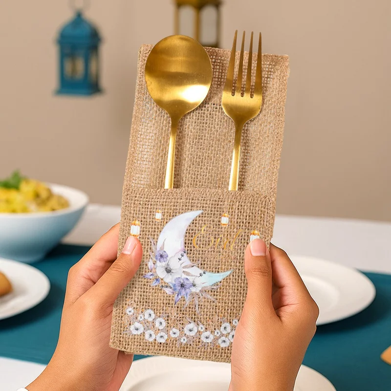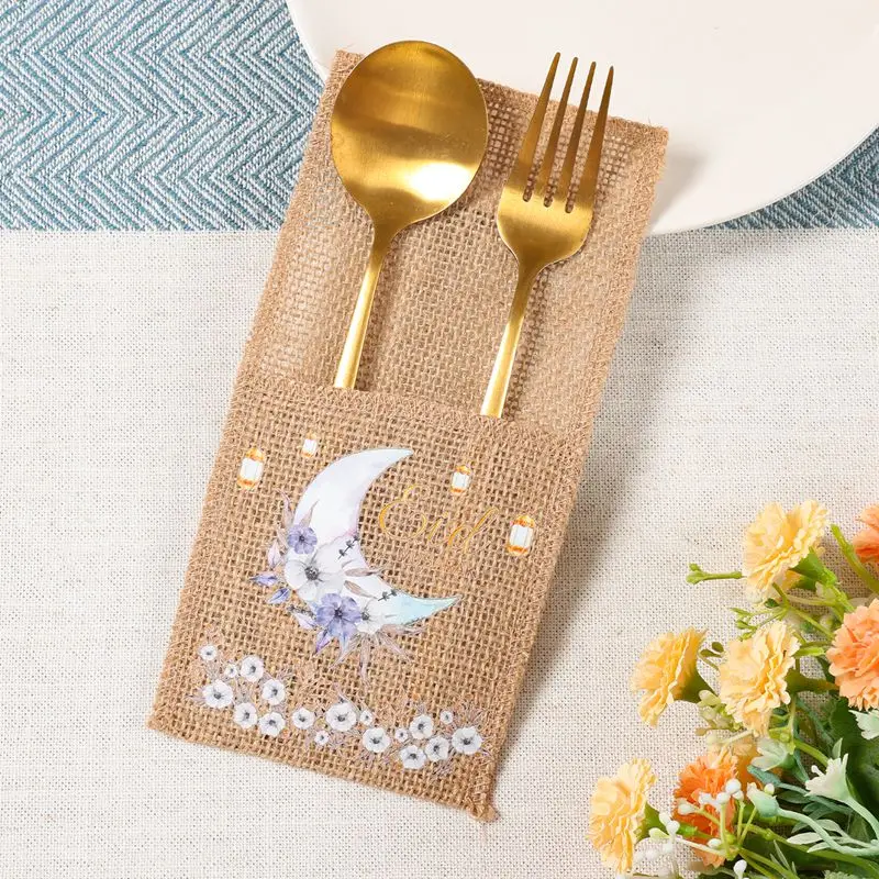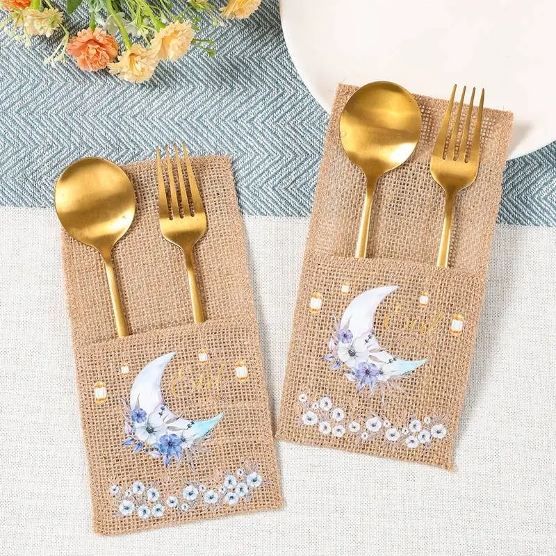 Bolsa de cubiertos decorativa de Ramadán, decoración EID Mubarak 2026 para el hogar, bolsa de cubiertos, Ramadán Kareem, fiesta musulmana islámica, regalos Eid Al Adha
