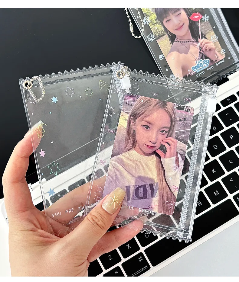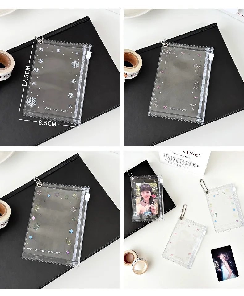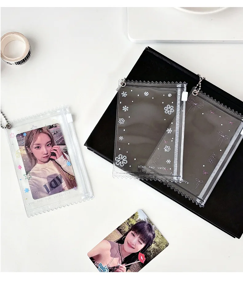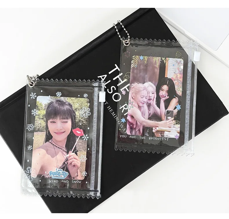 Bolsa de dulces transparente, fundas para tarjetas, soporte para sesión fotográfica, accesorios, bolsa de almacenamiento para insignias, colgante, películas para tarjetas de ídolo, Protector de tarjetas de juego