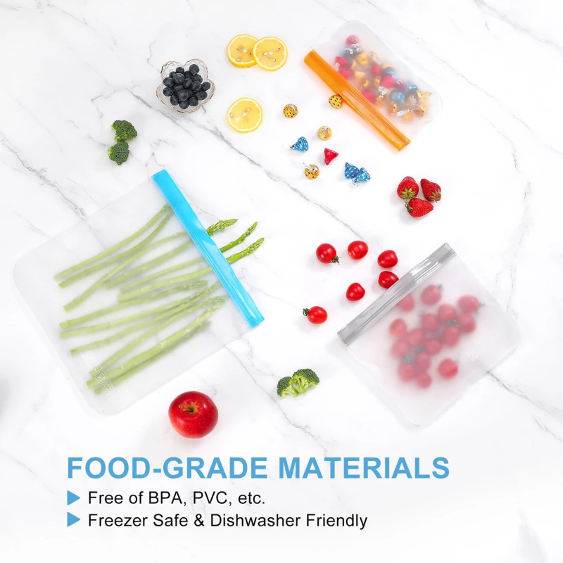 Comprar Bolsa fresca de silicona usada a prueba de fugas, bolsas de almacenamiento de alimentos, bolsas reutilizables con cremallera, envoltura refrescante, bolsas Ziplock