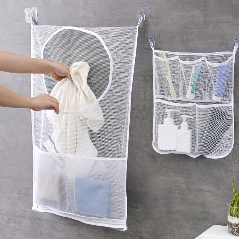 Bolsa de juego de malla para madre e hijo, organizador de juguetes de baño para el cuidado del cabello, productos de ducha de secado, almacenamiento de ropa con 2 ganchos de piezas