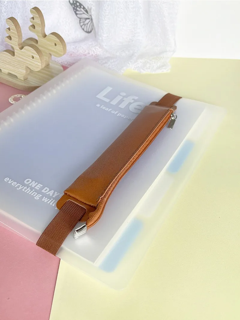 Bolsa de lápices de cuero con correa elástica para cuaderno, estuche de bolígrafo con cremallera, bolsillo, papelería portátil, bolsa de almacenamiento de lápices, suministros escolares de oficina