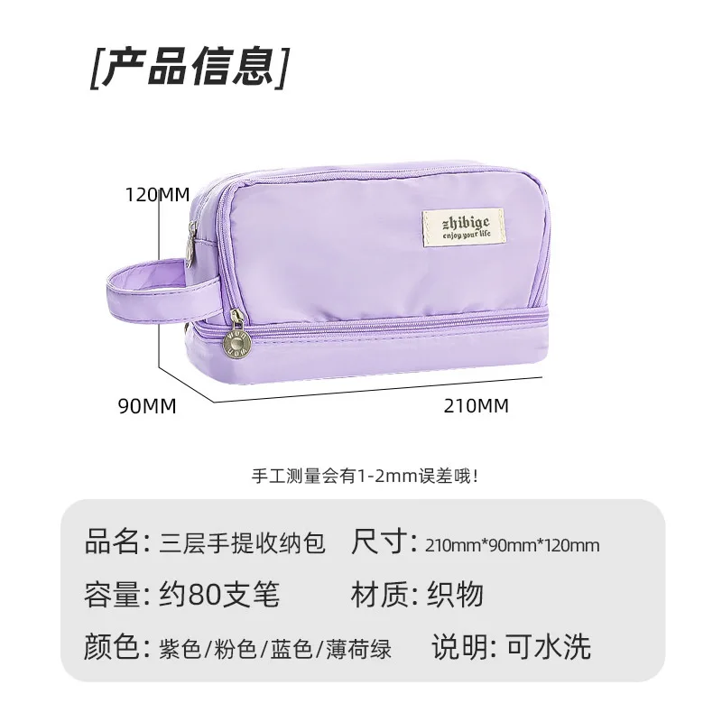 Bolsa de lápices para estudiantes de secundaria de gran capacidad, estuches de lápices de doble capa, bolsa de papelería multifuncional Simple