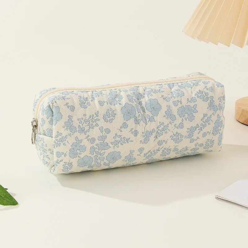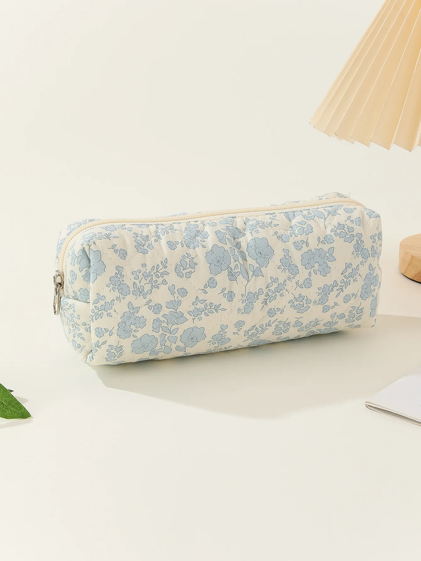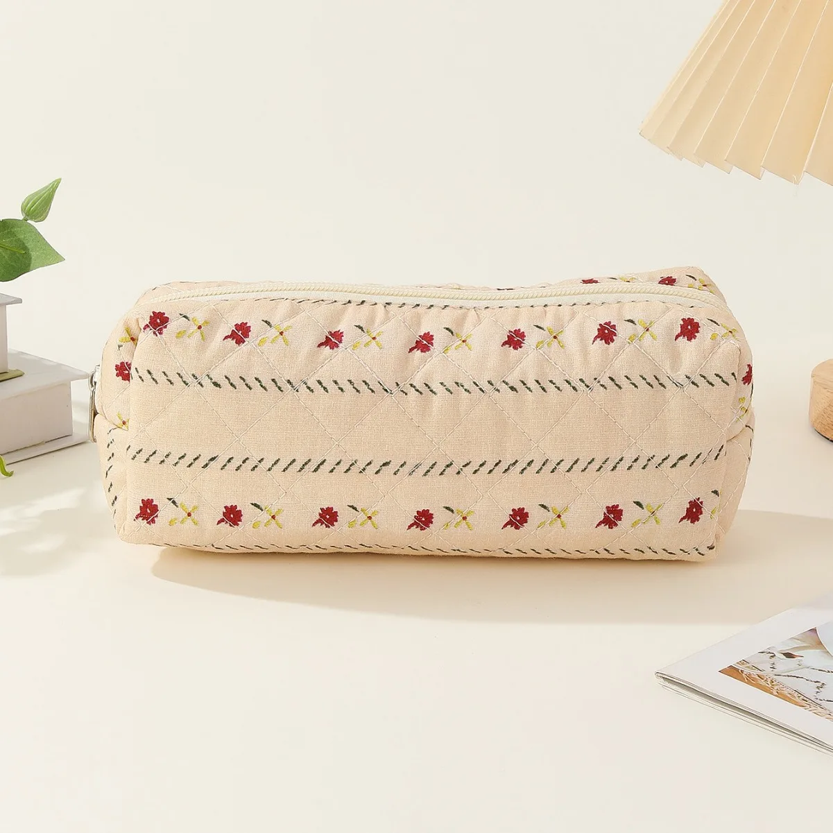 Bolsa de lápices Floral impresa, papelería para estudiantes, bolsa de lápices de gran capacidad con cremallera, bolsa de bolígrafos de algodón para volver a la escuela