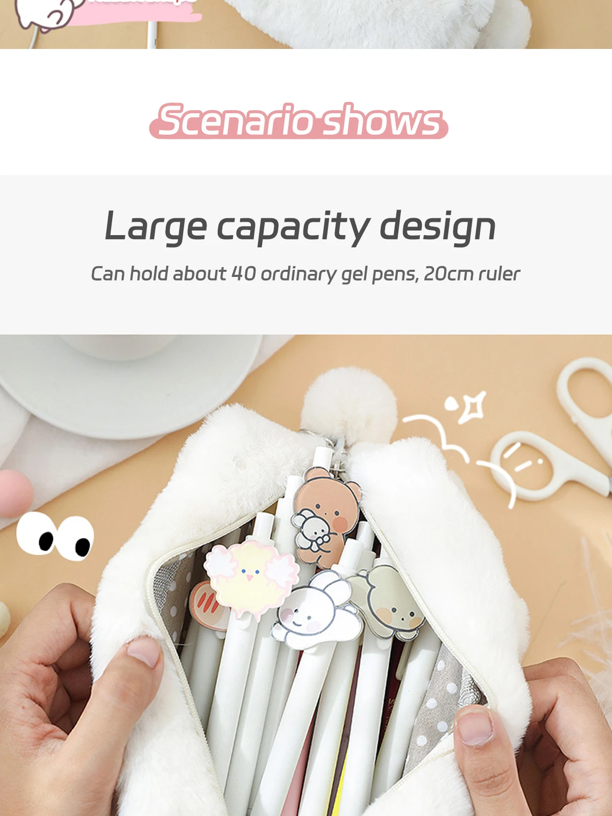 Comprar Bolsa de lápices Kawaii de gran capacidad, estuche para bolígrafos, Lindo bolso de cosméticos de felpa, regreso a la escuela para niñas, suministros para estudiantes, caja de papelería
