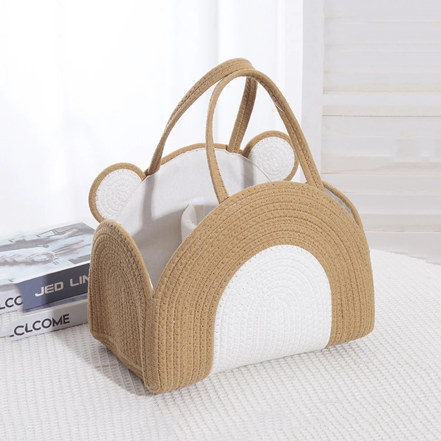 Bolsa de mamá con cuerda de algodón, cesta de pañales de mano para bebé, bolsa de almacenamiento, bolso de estilo Ins, bolsa de almacenamiento tejida para trabajadores de oficina