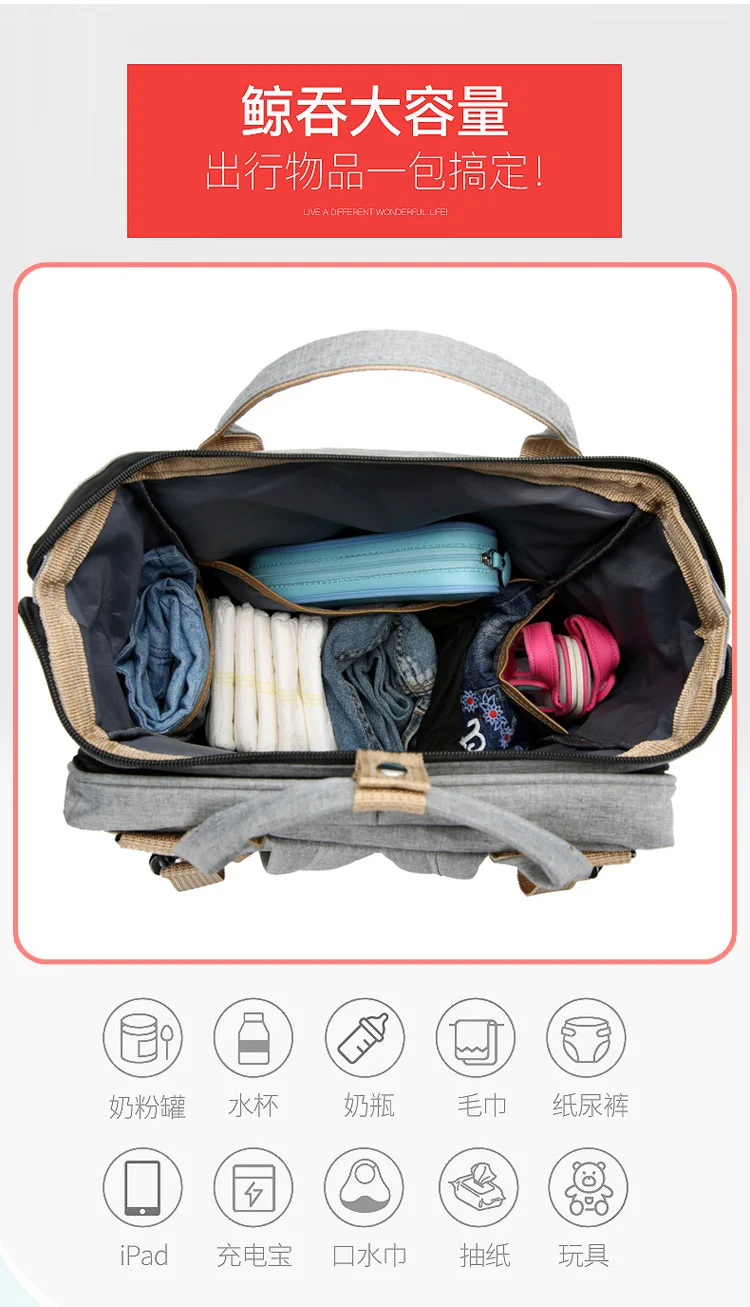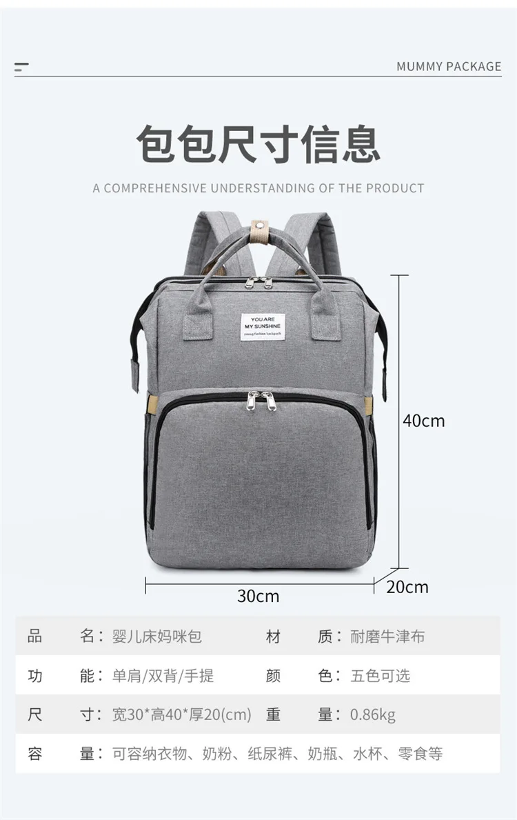 Bolsa de mamá minimalista mejorada, mochila plegable portátil, multifuncional, gran capacidad, cuna para bebé, bolsa de mamá para madre y bebé