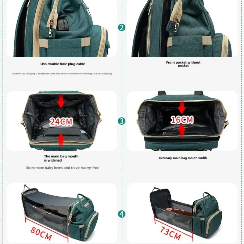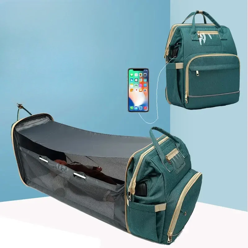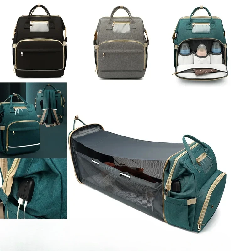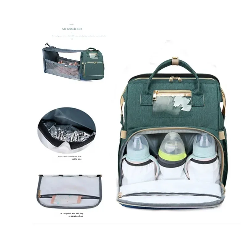 Comprar Bolsa de mamá plegable para cama de bebé EG190, bolso multifunción para cochecito de doble hombro, mochila de maternidad de gran capacidad lista para viajar