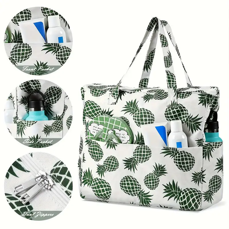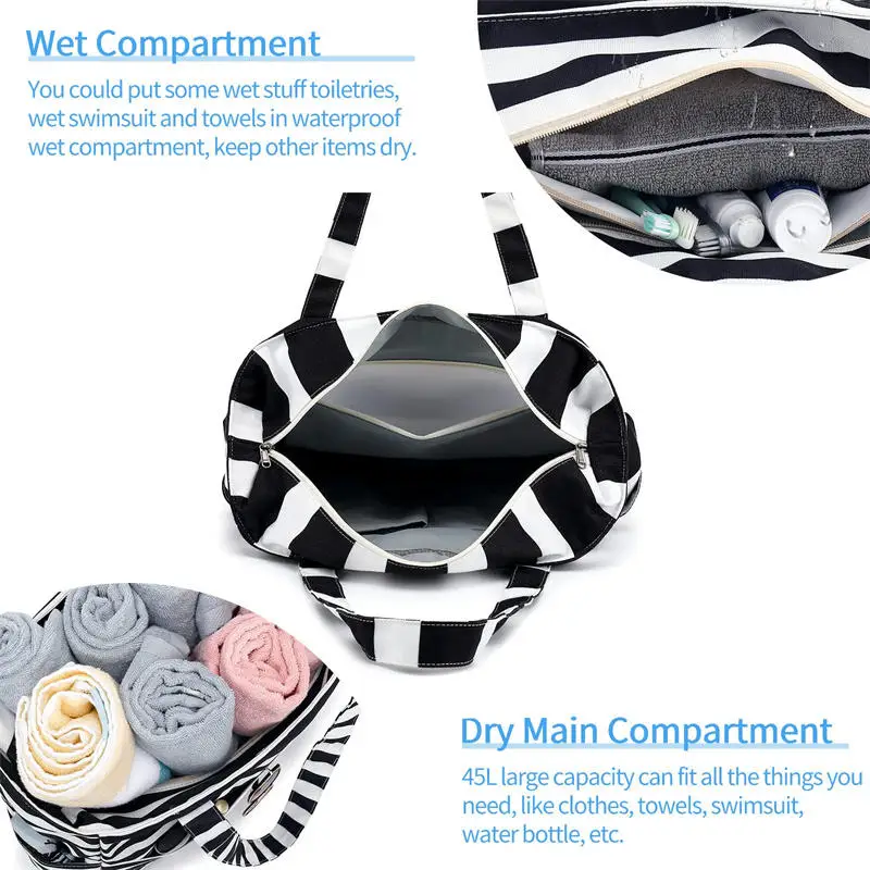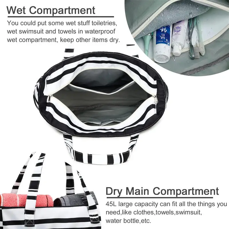 Comprar Bolsa de mano para piscina con cremallera para gimnasio, comestibles, viajes, vacaciones, elementos esenciales, bolsas de playa para mujer, grande, impermeable, a prueba de arena