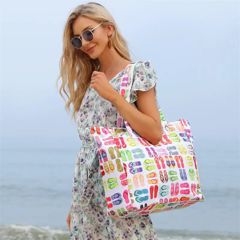 Comprar Bolsa de mano para piscina con cremallera para gimnasio, comestibles, viajes, vacaciones, elementos esenciales, bolsas de playa para mujer, grande, impermeable, a prueba de arena