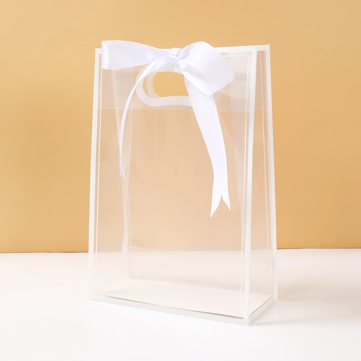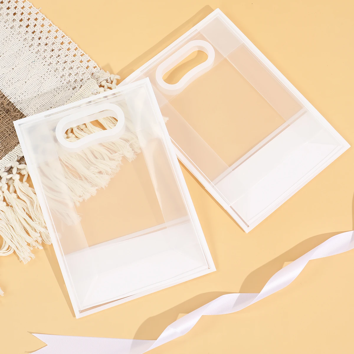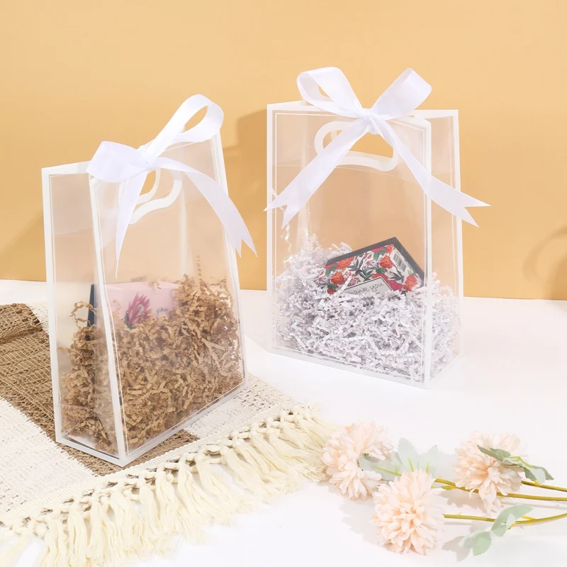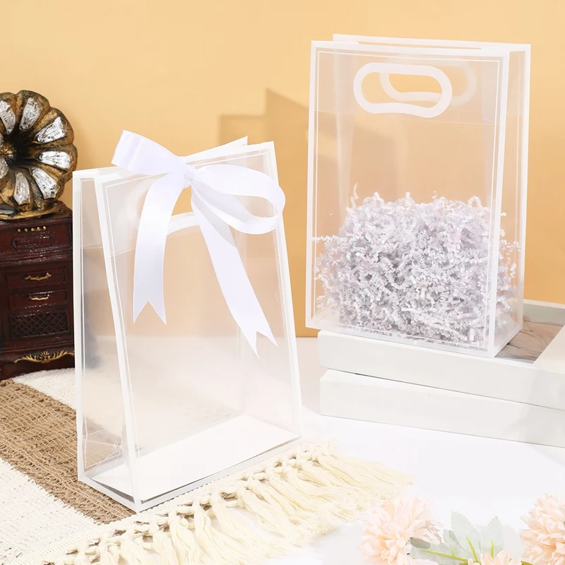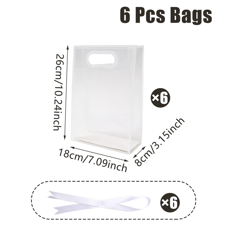 Bolsa de mano transparente con cinta blanca, bolsa de embalaje de dulces para regalo de boda, decoración para fiesta de cumpleaños, decoración para fiesta de bienvenida de bebé, 6/12 Uds.