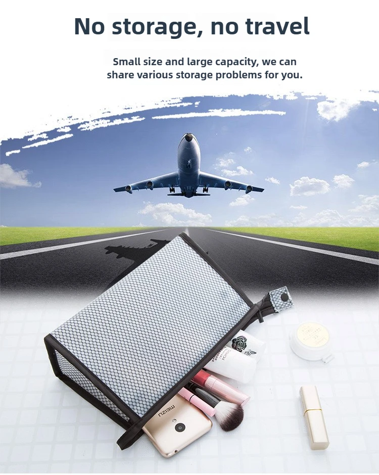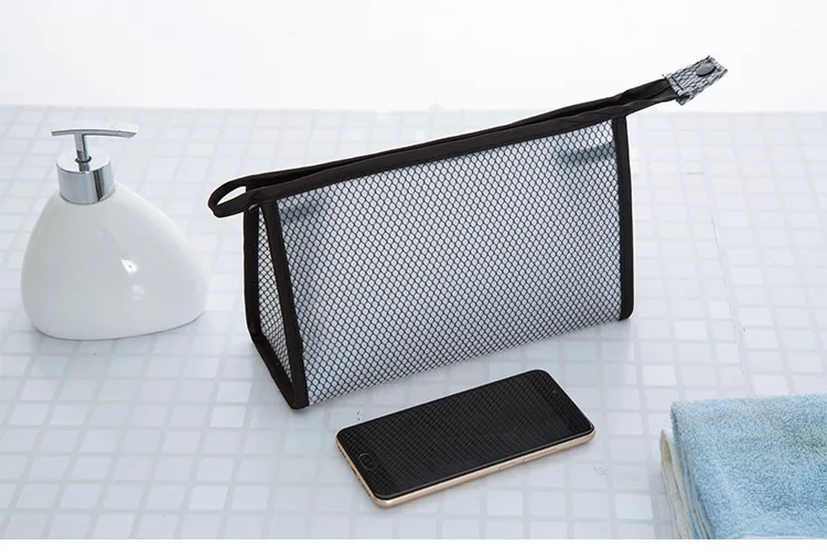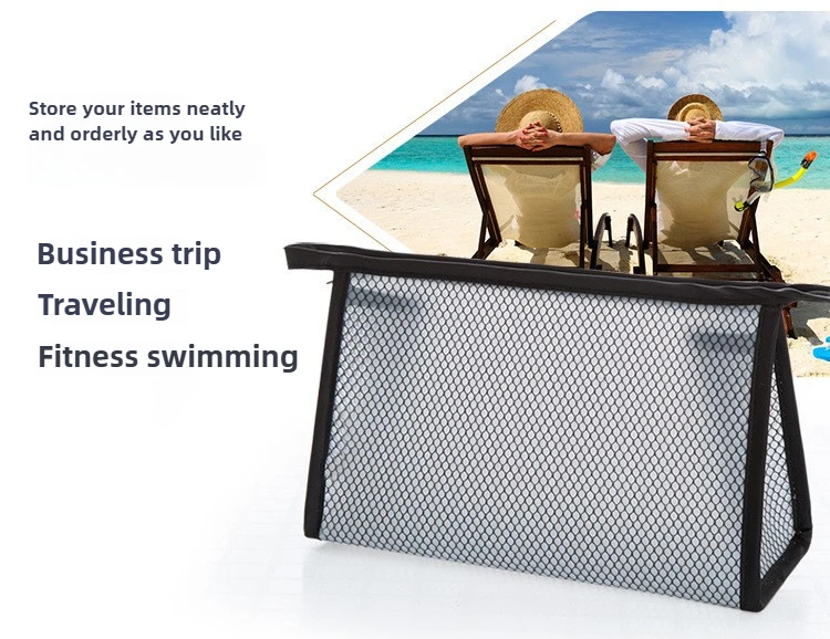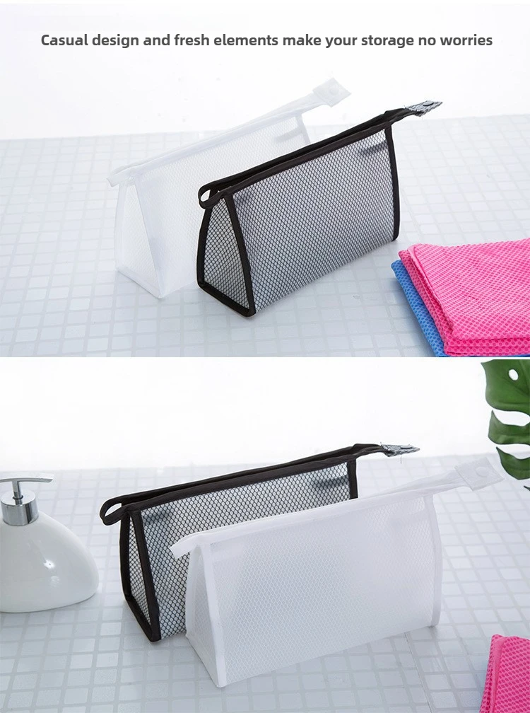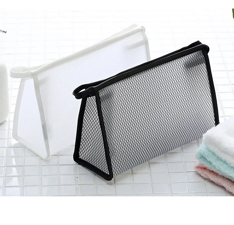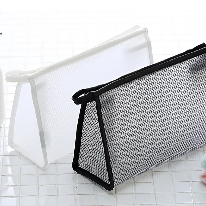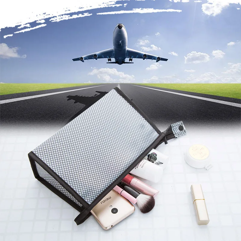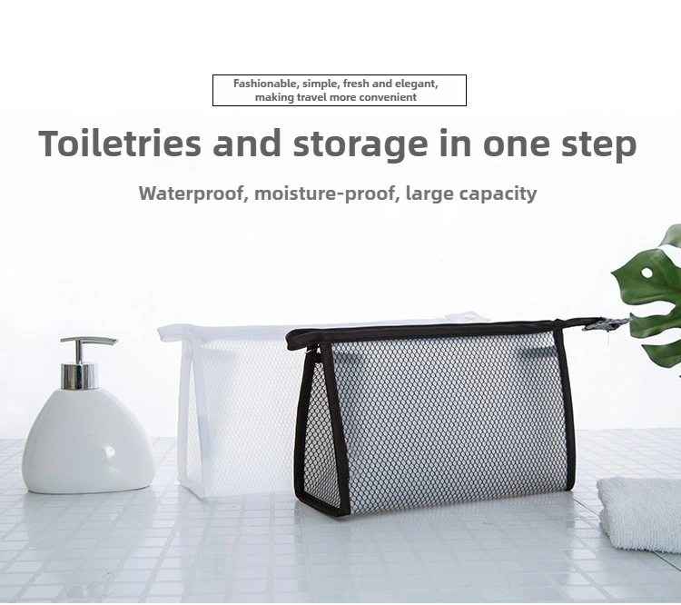 Bolsa de maquillaje transparente, bolsa de almacenamiento de viaje, bolsa de aseo portátil de malla de PVC, bolsa de almacenamiento de maquillaje de viaje impermeable