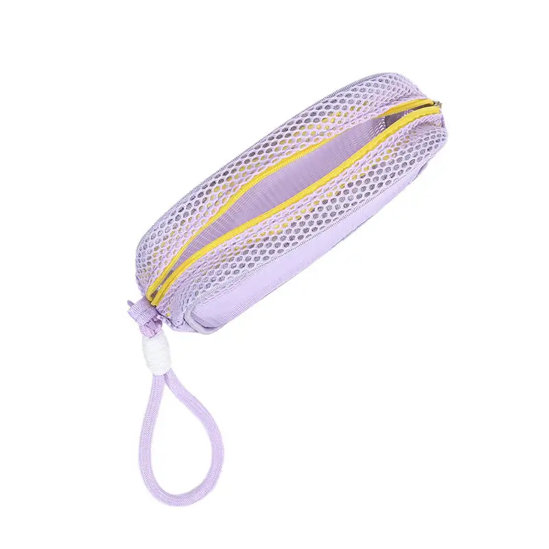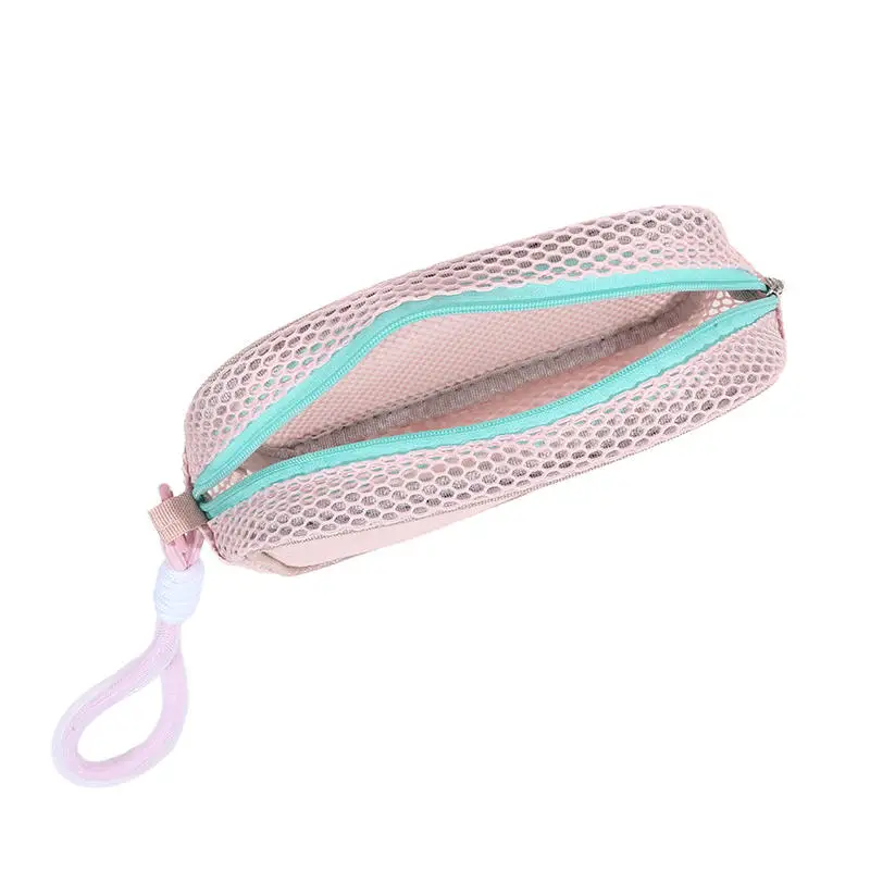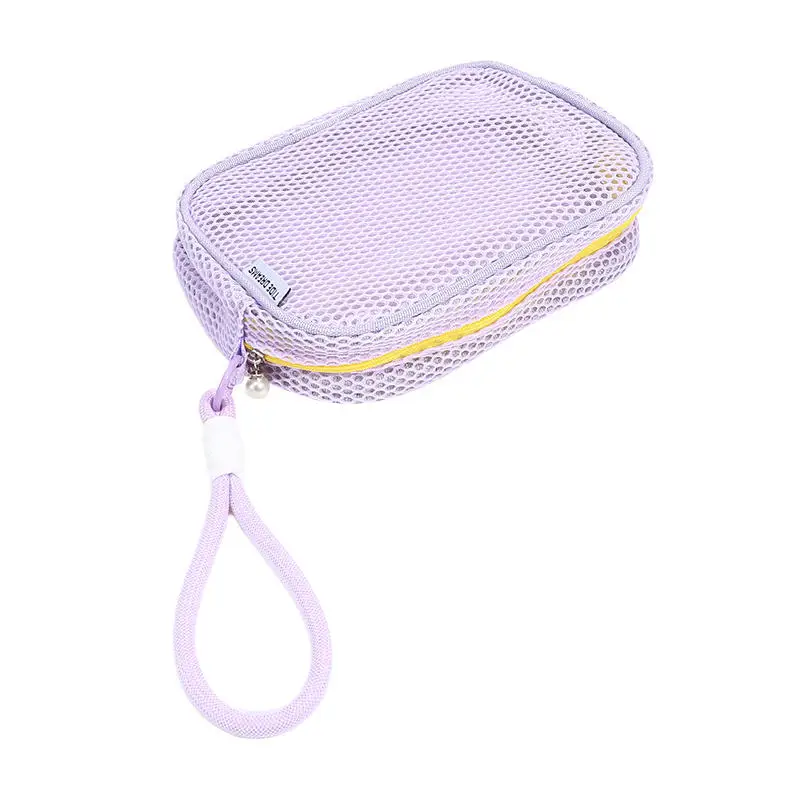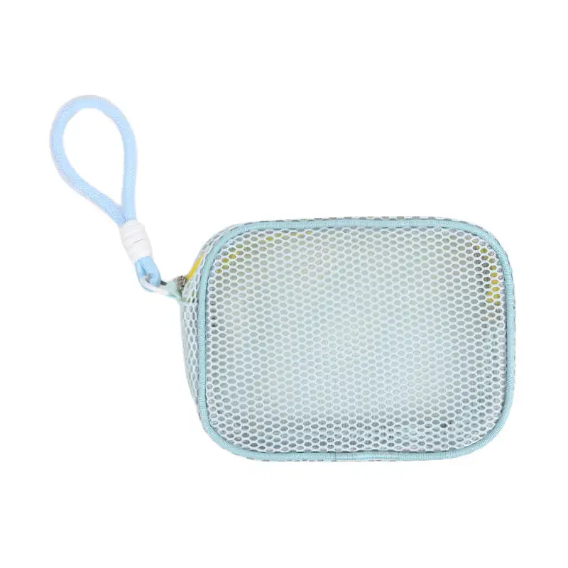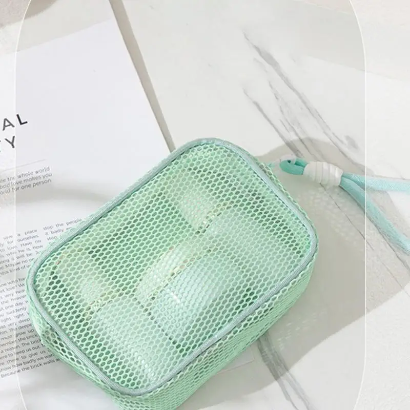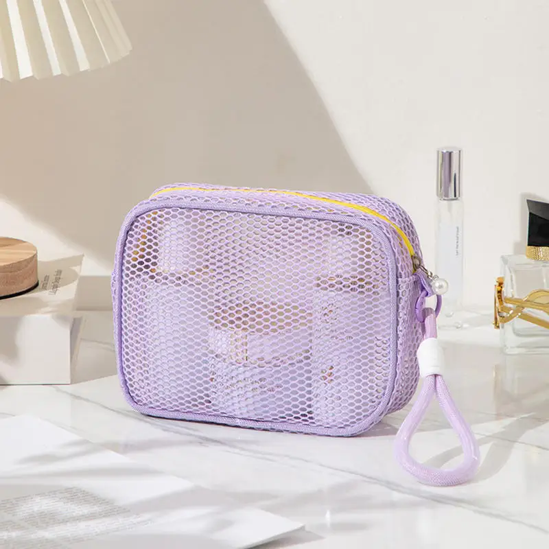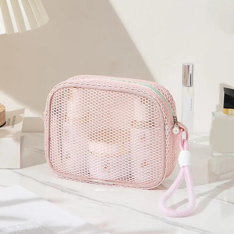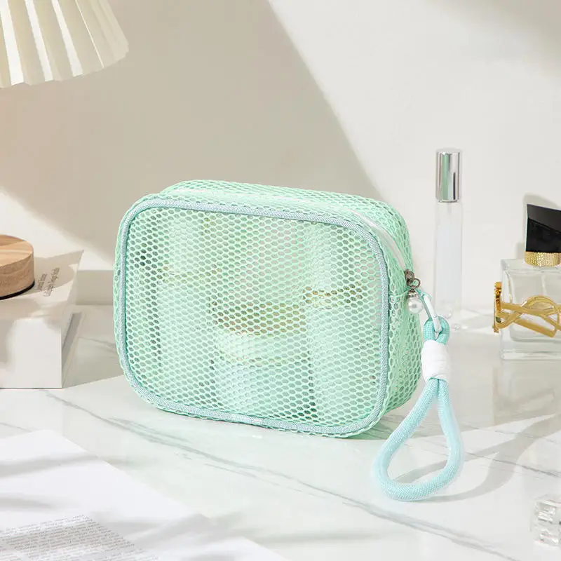 Bolsa de maquillaje de viaje portátil, Mini bolsa de almacenamiento de rejilla, bolsa de almacenamiento de cosméticos transpirable, tamaño compacto, un solo Color