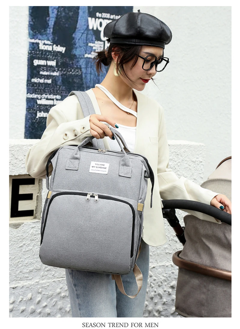 Comprar Bolsa de pañales para bebé, bolsas de maternidad pequeñas de viaje, mochila gris para cambiar pañales para bebé, bolsa de almuerzo aislada, organizador para cochecito