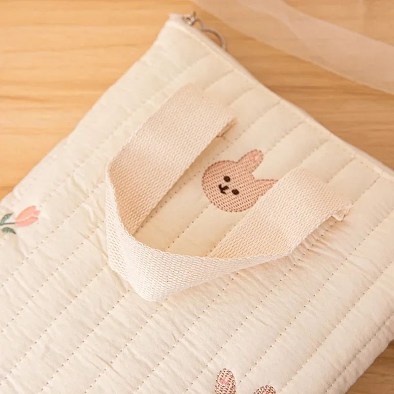 Bolsa de pañales para bebé con bordado de oso bonito, bolsa portátil para pañales, bolsa de algodón para mamá, bolsa de almacenamiento para cochecito, organizador para bebé