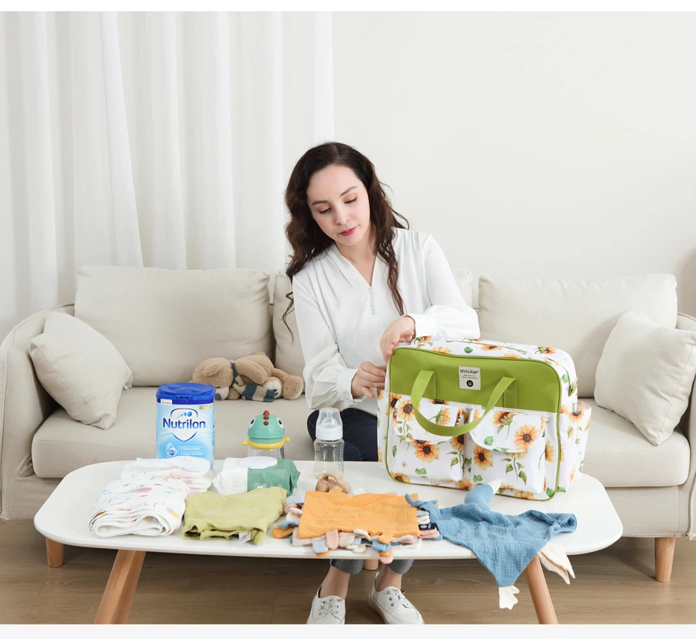 Bolsa de pañales Insular para bebé, bolso de mano para mamá de gran capacidad, bolso de hombro con estampado de moda, bolsas de pañales para cochecito de momia de viaje al aire libre