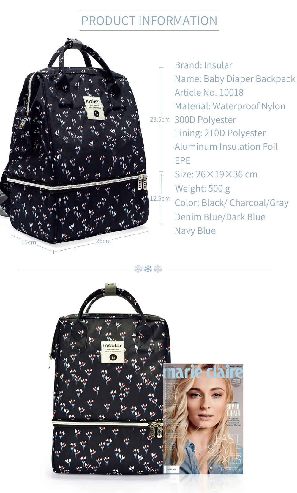 Bolsa de pañales de gran capacidad, mochila, bolsa de maternidad impermeable, bolsas de pañales para bebés de dos capas, bolsa enfriadora de leche materna para cochecito