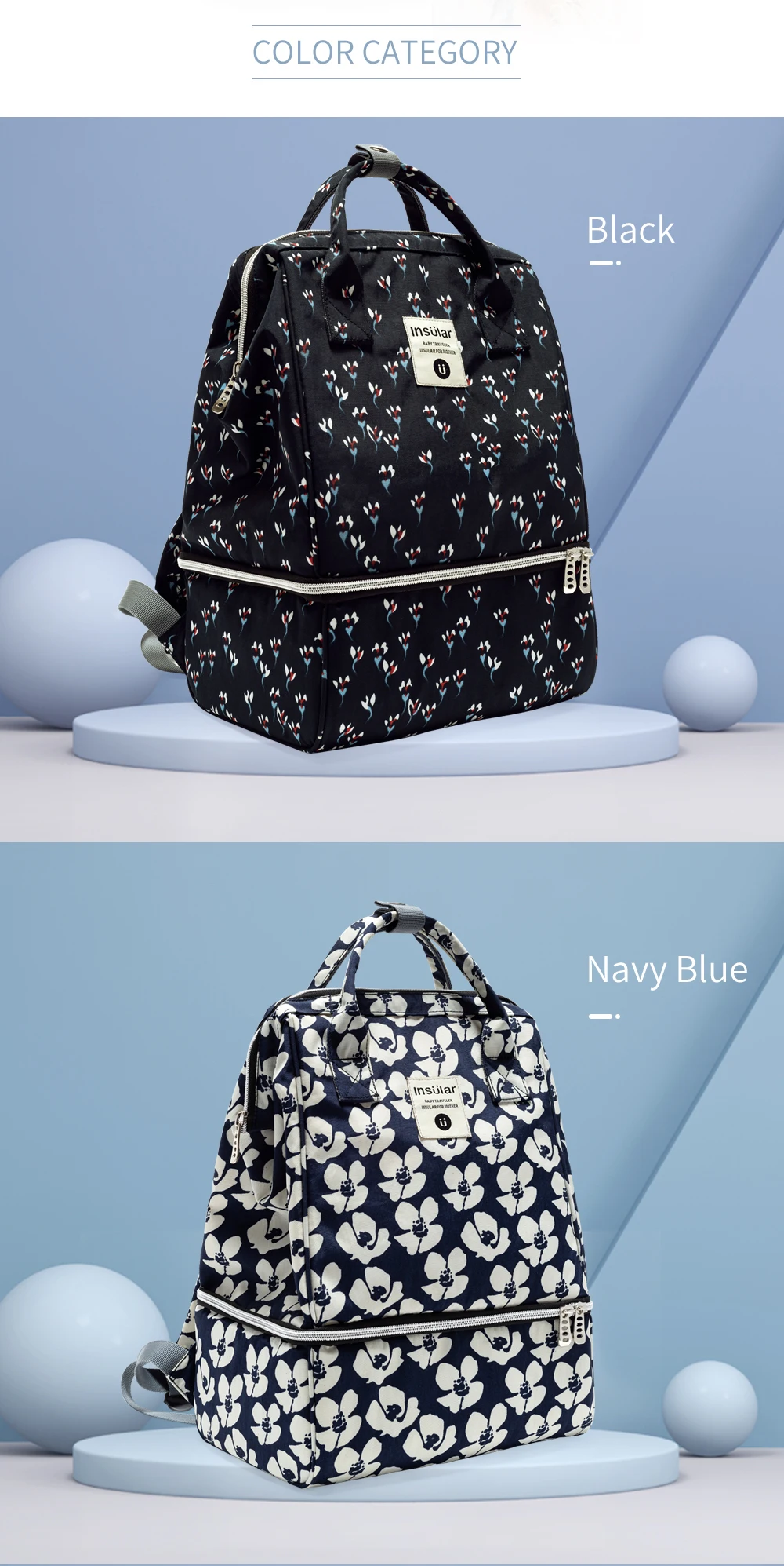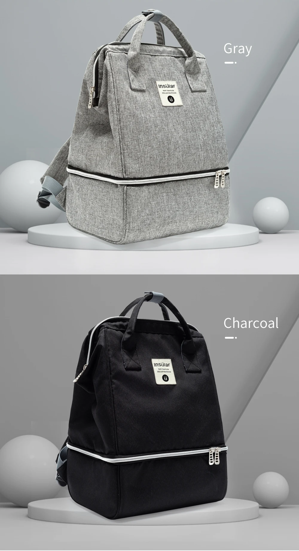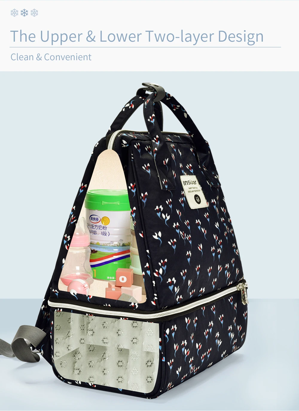 Bolsa de pañales de gran capacidad, mochila impermeable, bolsa de maternidad, bolsas de pañales de bebé de dos capas, bolsa enfriadora de leche materna para cochecito