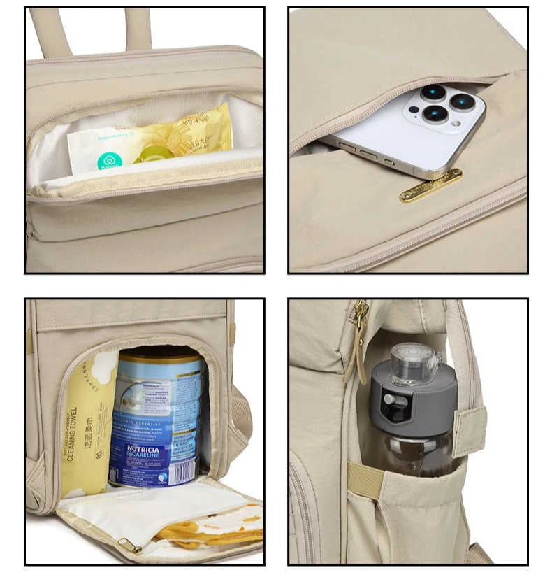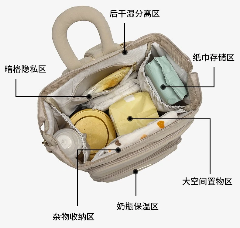 Bolsa de pañales informal de gran capacidad, bolso de maternidad multifunción para mamá con bolsillo separado en seco y húmedo, organizador de artículos esenciales para bebé de viaje