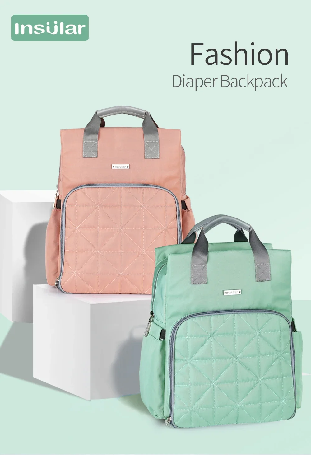 Insular nueva moda bolsa de pañales mochila de gran capacidad bolsa de pañales para el cuidado del bebé