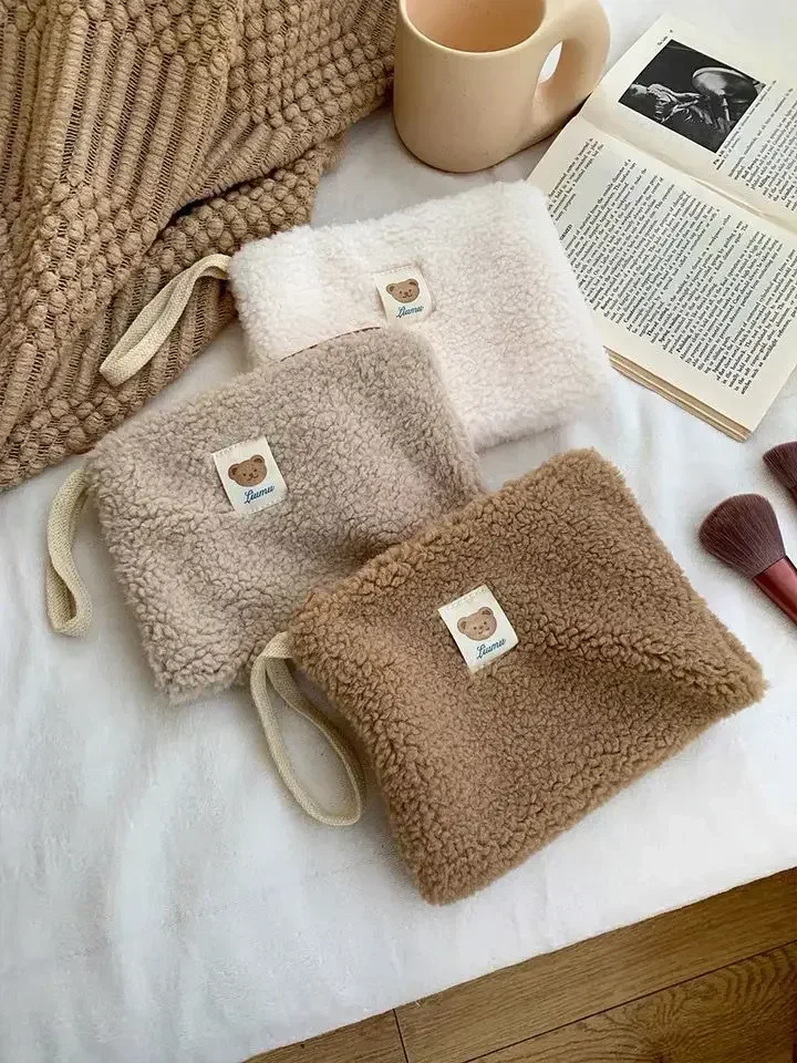 Comprar Bolsa de pañales de oso para recién nacido, organizador de dibujos animados de felpa para bebé, bolsa de almacenamiento de artículos de bebé encantador para mujer, organizador de bebé pequeño, nuevo