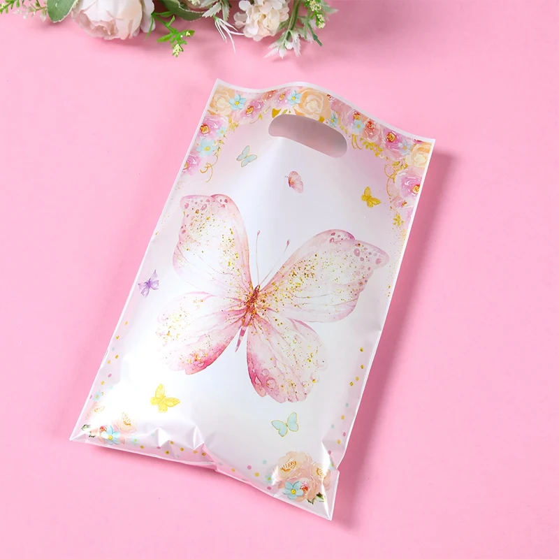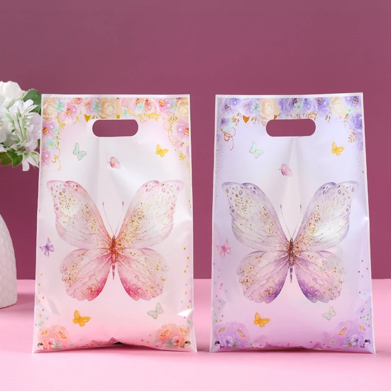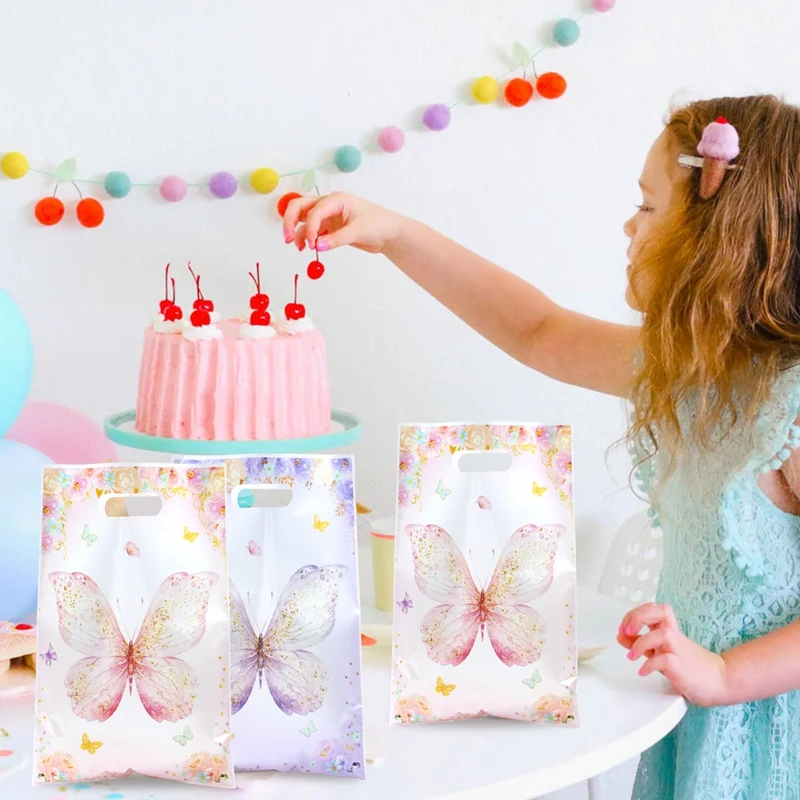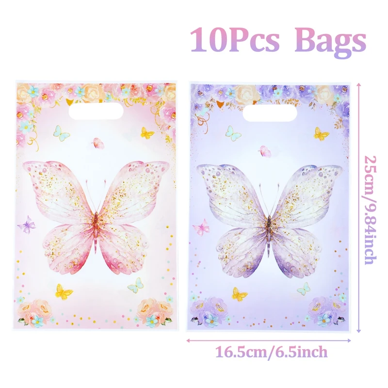 Bolsa de regalo de dulces de plástico con mariposa rosa y púrpura, decoración para fiesta de cumpleaños, suministros para fiesta de bienvenida al bebé, boda, cumpleaños, 10/24/50 Uds.