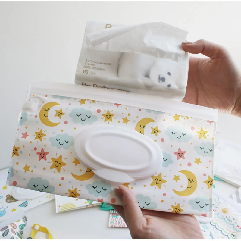 Comprar Bolsa de toallitas húmedas EVA para bebé, funda portátil con tapa, correa a presión, reutilizable, recargable, caja de pañuelos útiles para cosméticos