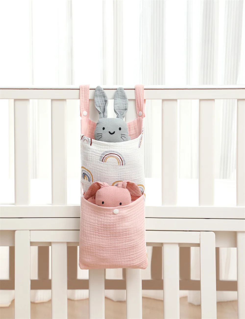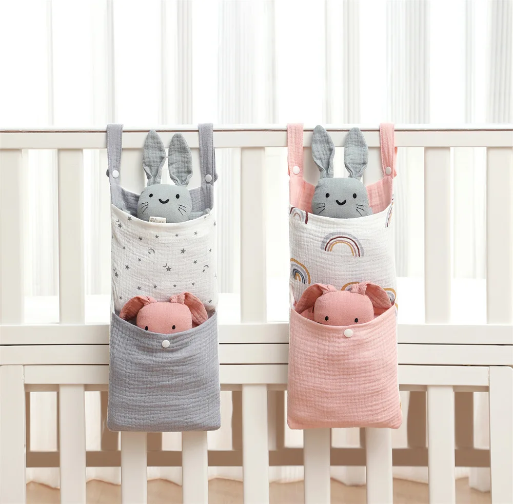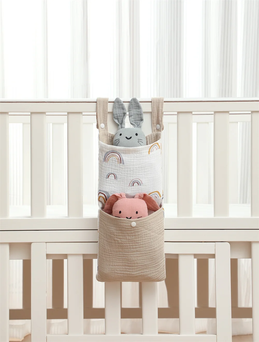 Bolsas de almacenamiento colgantes para cama de bebé, organizador de algodón para cuna de recién nacido, bolsillo para pañales de juguete, juego de ropa de cama, accesorios, bolsas de tienda de pañales