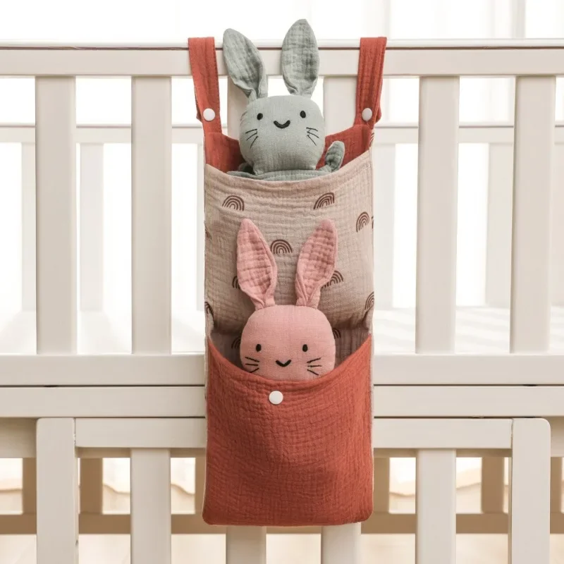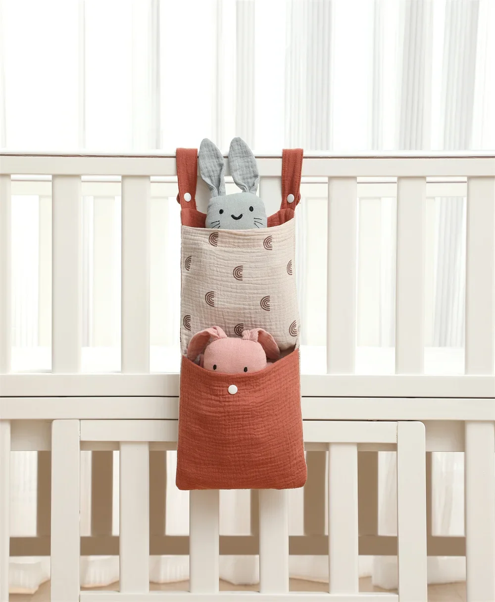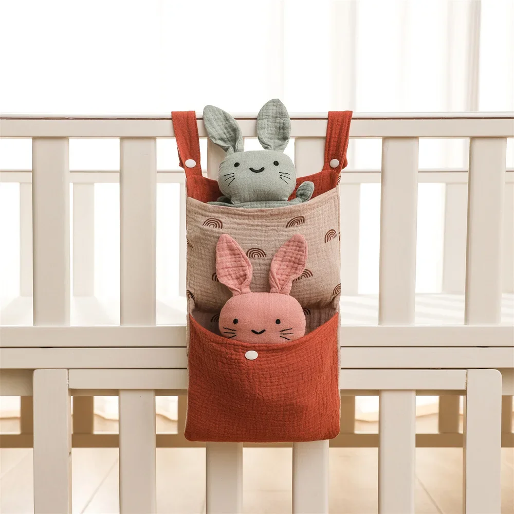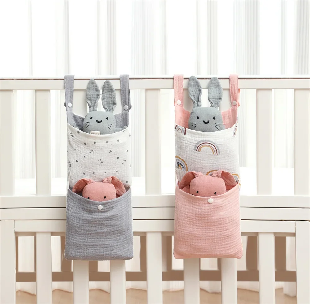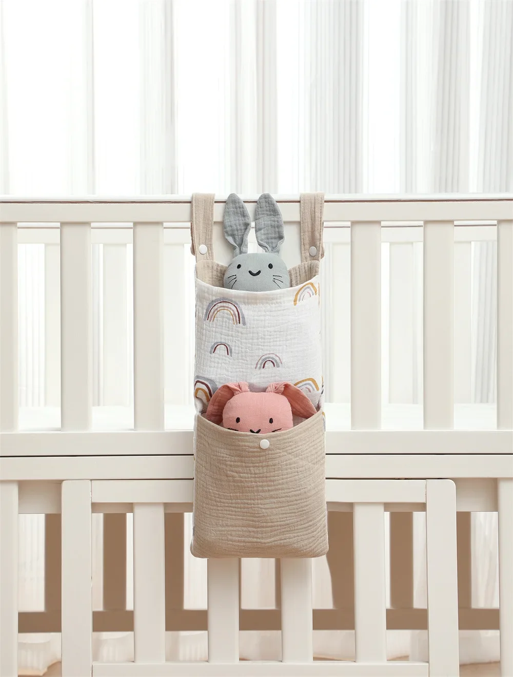 Comprar Bolsas de almacenamiento colgantes para cama de muselina para recién nacido, organizador multifuncional para cochecito de cuna, bolsa colgante portátil para cabecera de pañales