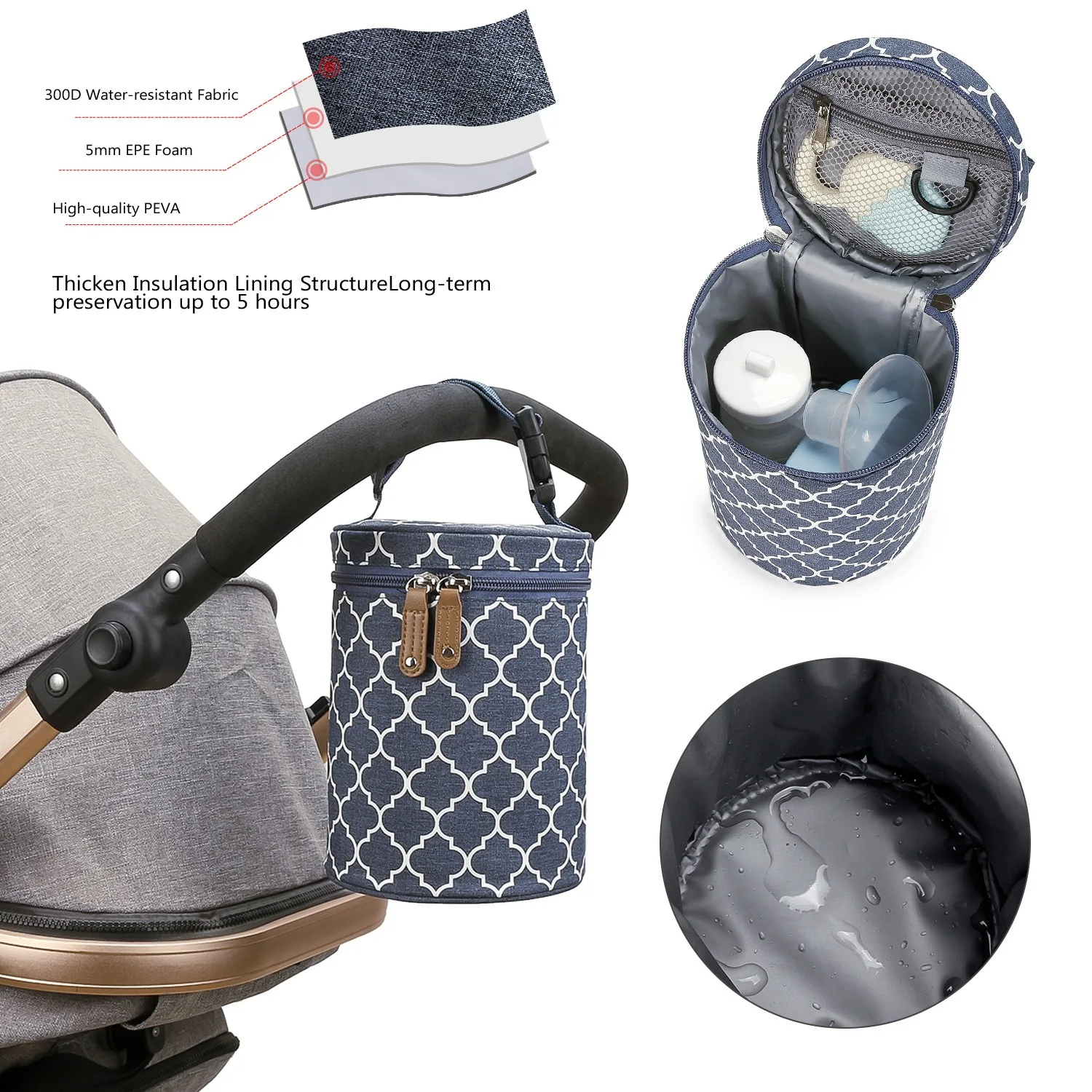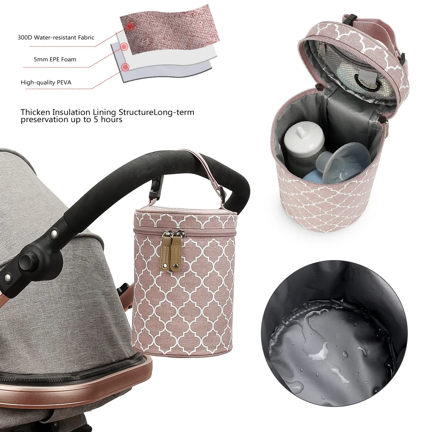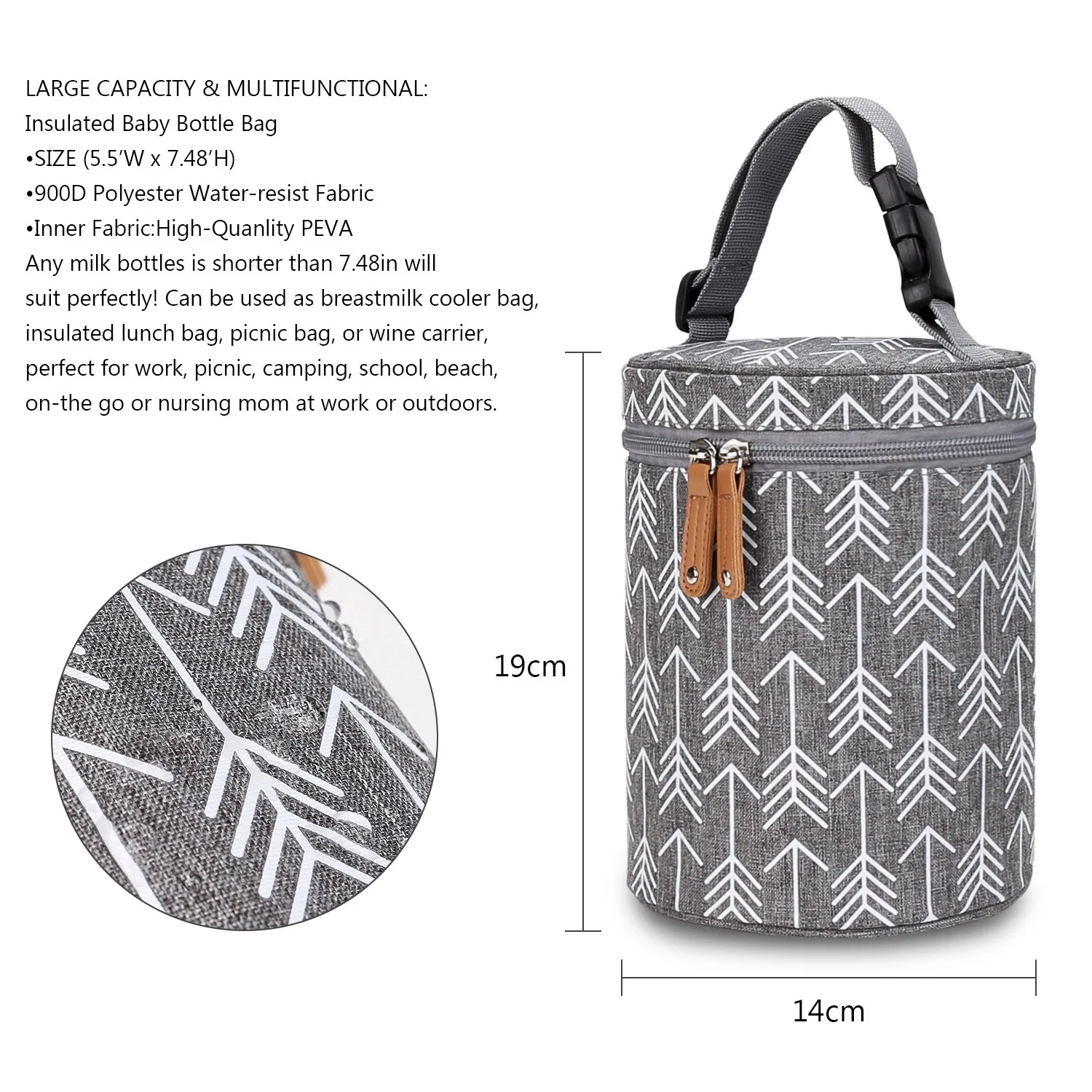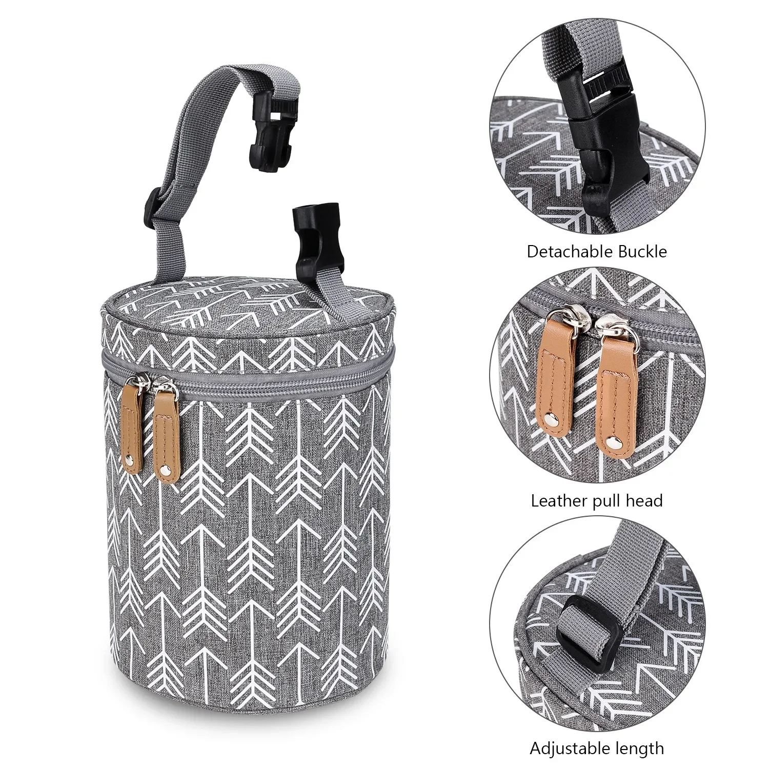 Bolsas para botellas con estampado de bebé, cubo redondo de mano, cochecitos de comida pequeños, paquete de succión colgante, preservación a temperatura constante