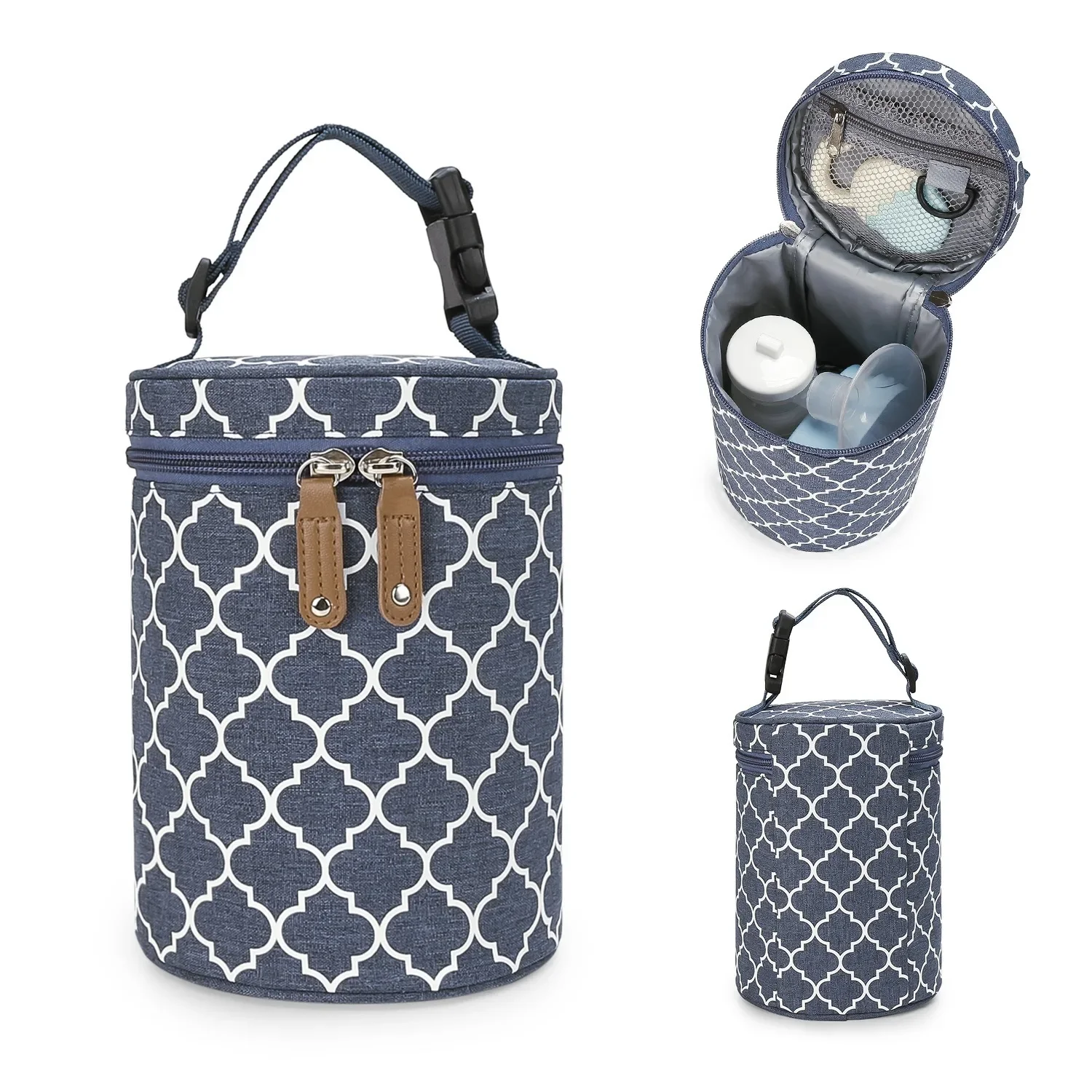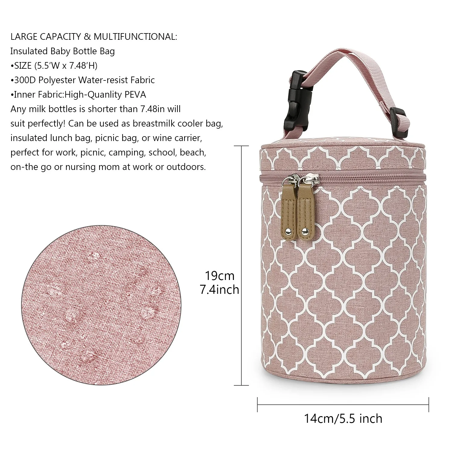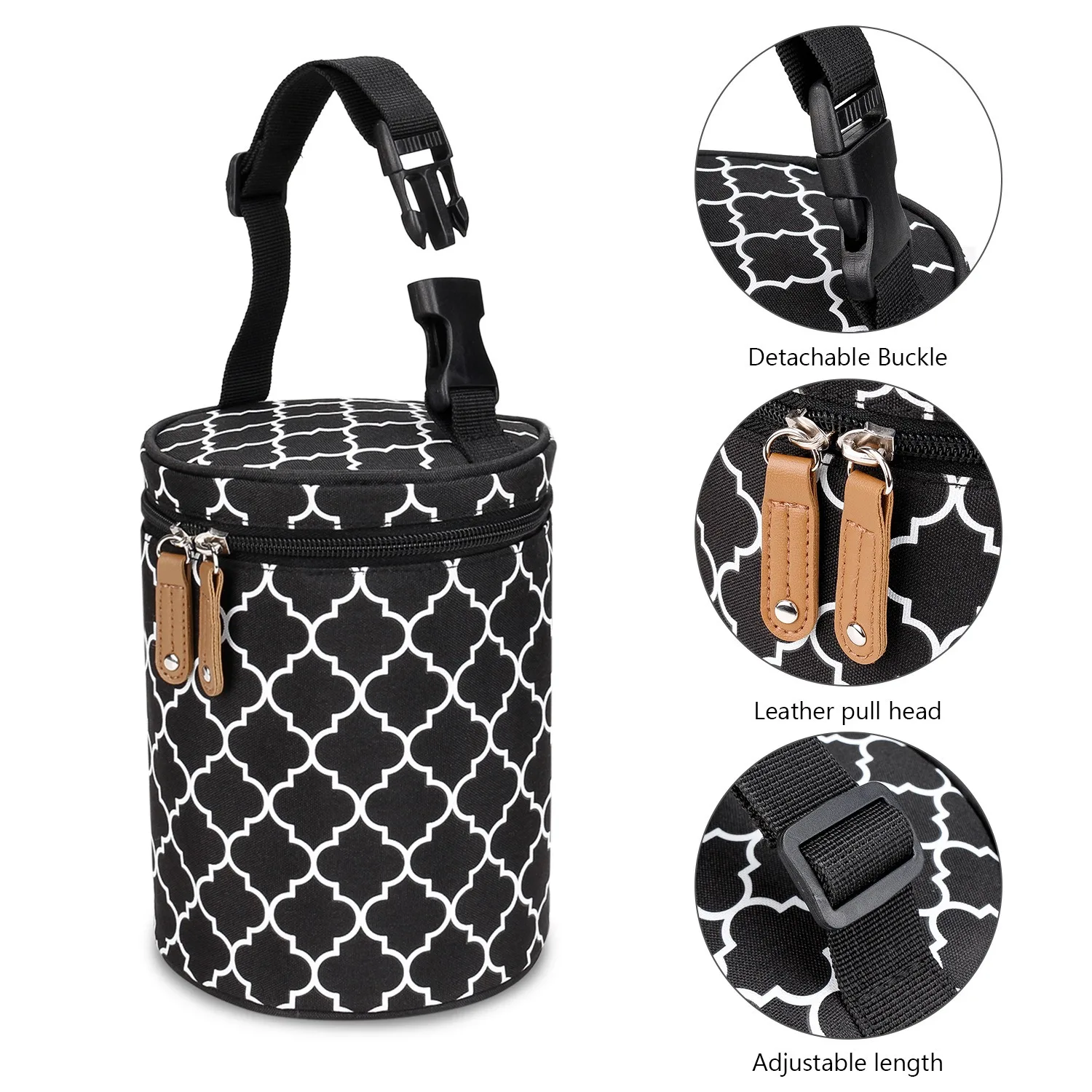 Bolsas para botellas con estampado de bebé, cubo redondo de mano, cochecitos de comida pequeños, paquete de succión colgante, preservación a temperatura constante