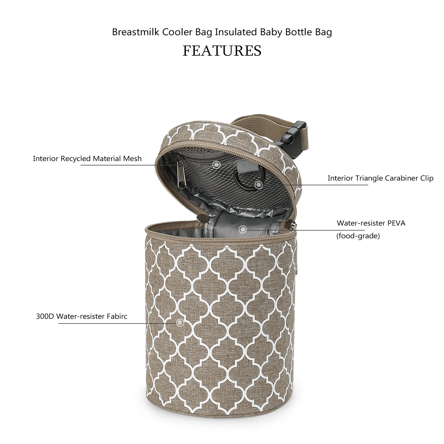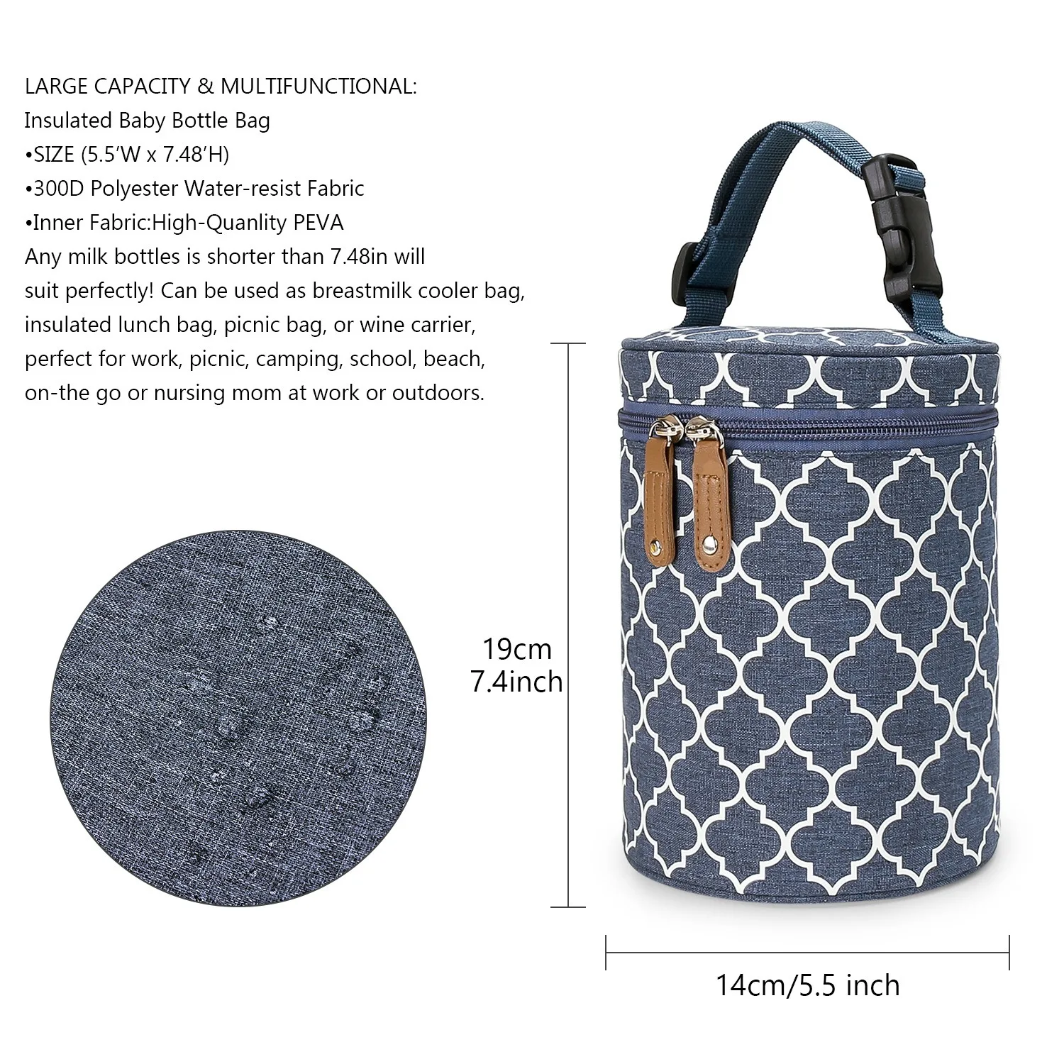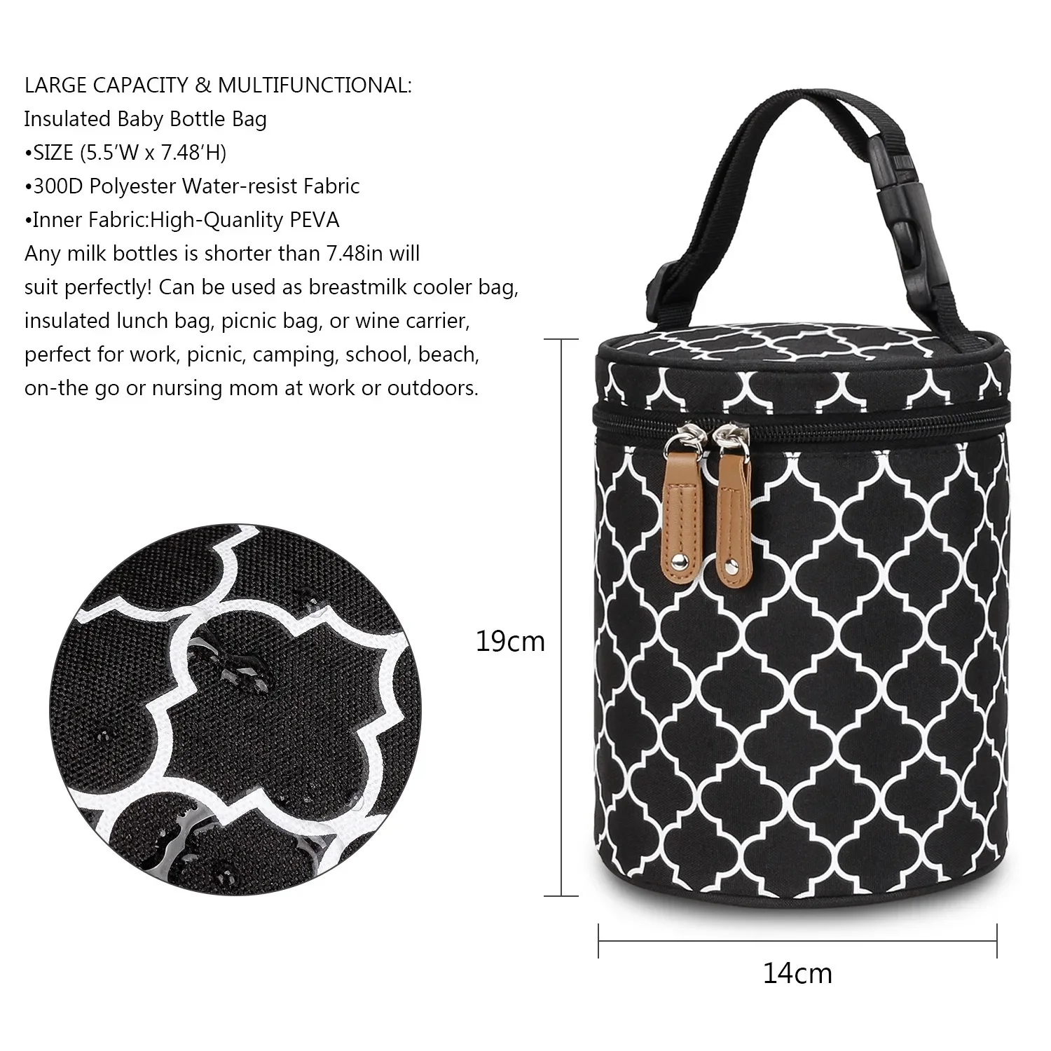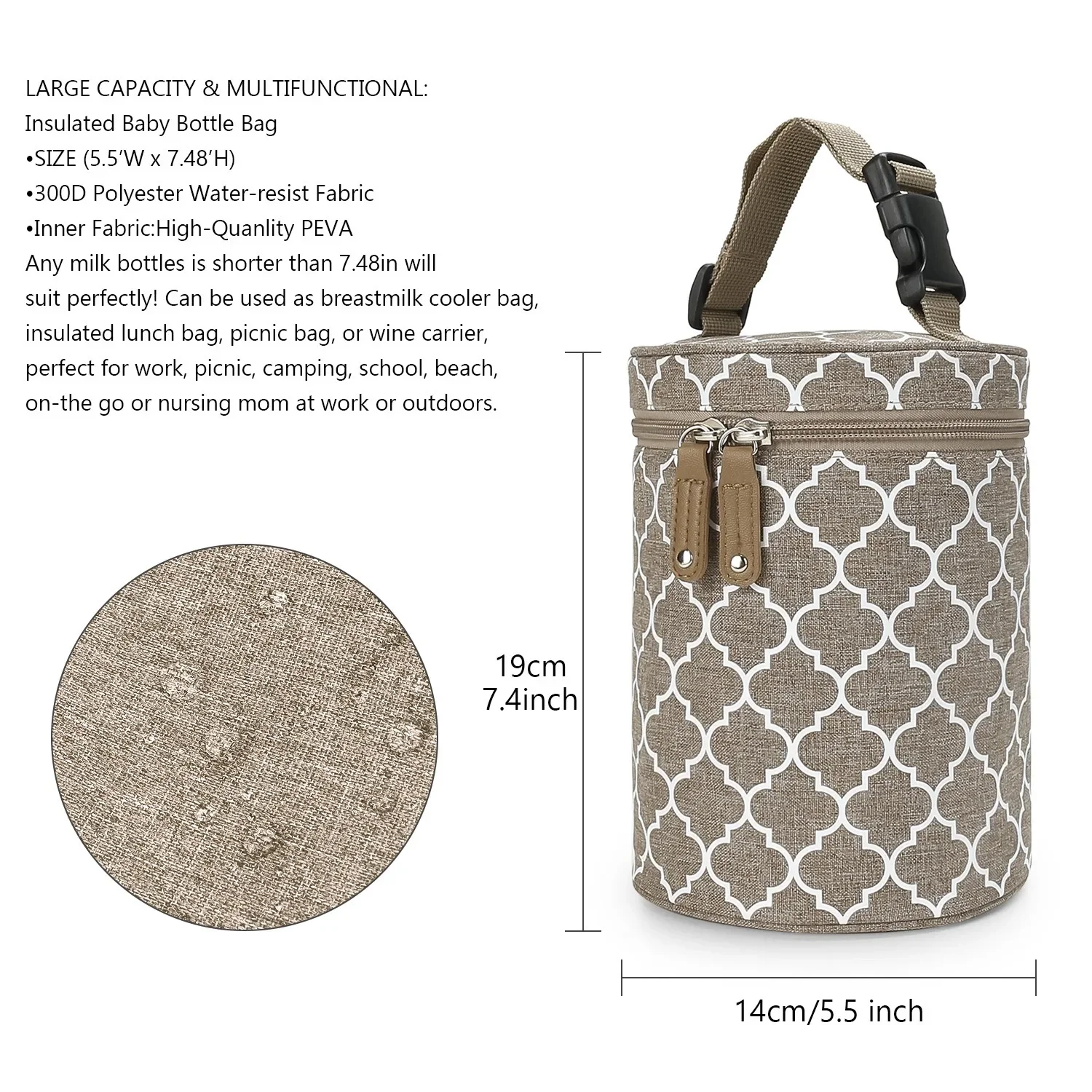 Bolsas para botellas con estampado de bebé, cubo redondo de mano, cochecitos de comida pequeños, paquete de succión colgante, preservación a temperatura constante