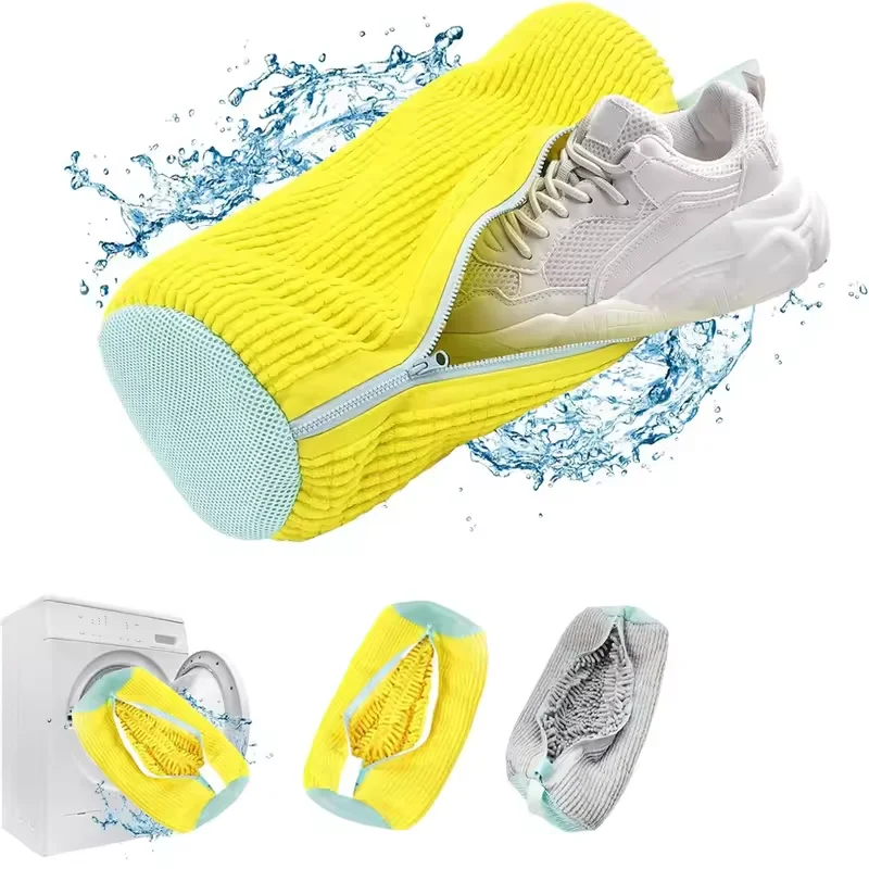 【Alta calidad】Esta bolsa para zapatos de lavandería está hecha de tela de poliéster de alta calidad que el agua y el jabón pueden fluir fácilmente a través de ella, que es resistente al desgarro y no se deforma fácilmente para ayudar a limpiar sus zapatos a fondo y suavemente en la lavadora, y es reutilizable y de uso prolongado.